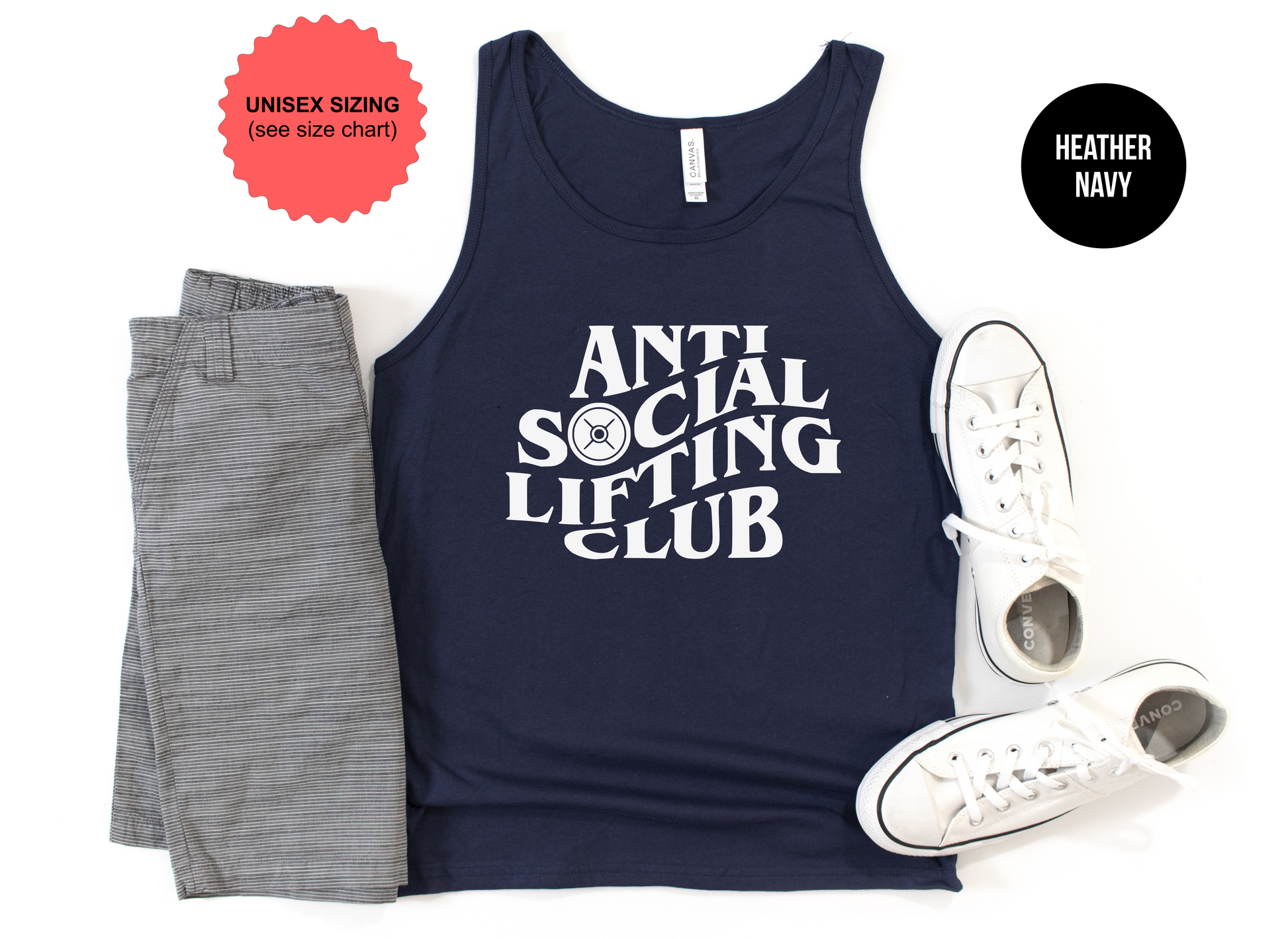 Feeling anti-social? Join the Ant-Social Lifting Club! This hilarious tank top from The Shirt Republic is the perfect way to show the world that you like to keep a low profile. The shirt's slogan and graphics will help you lift your spirits while avoiding human interaction! Come on out - no signup required!