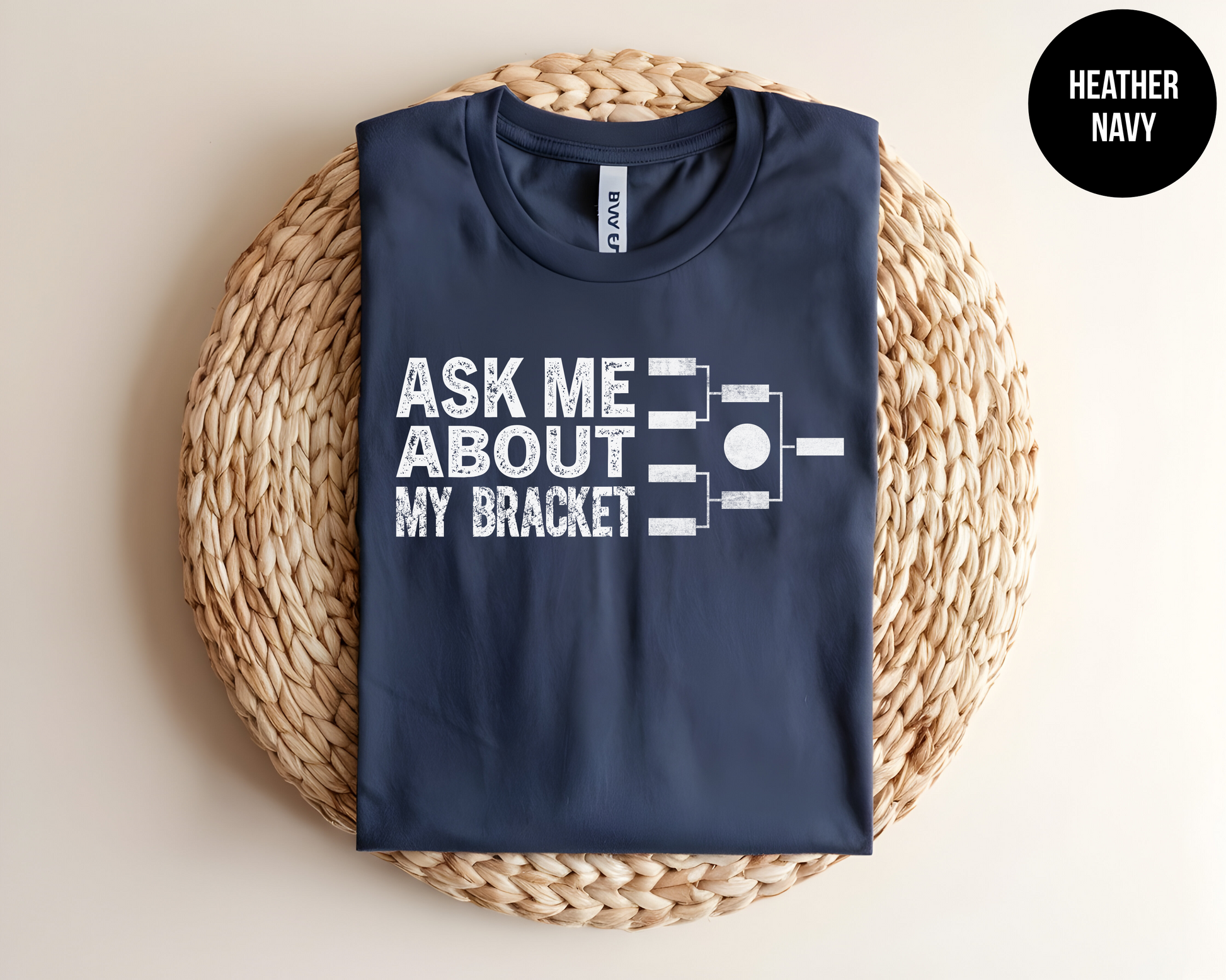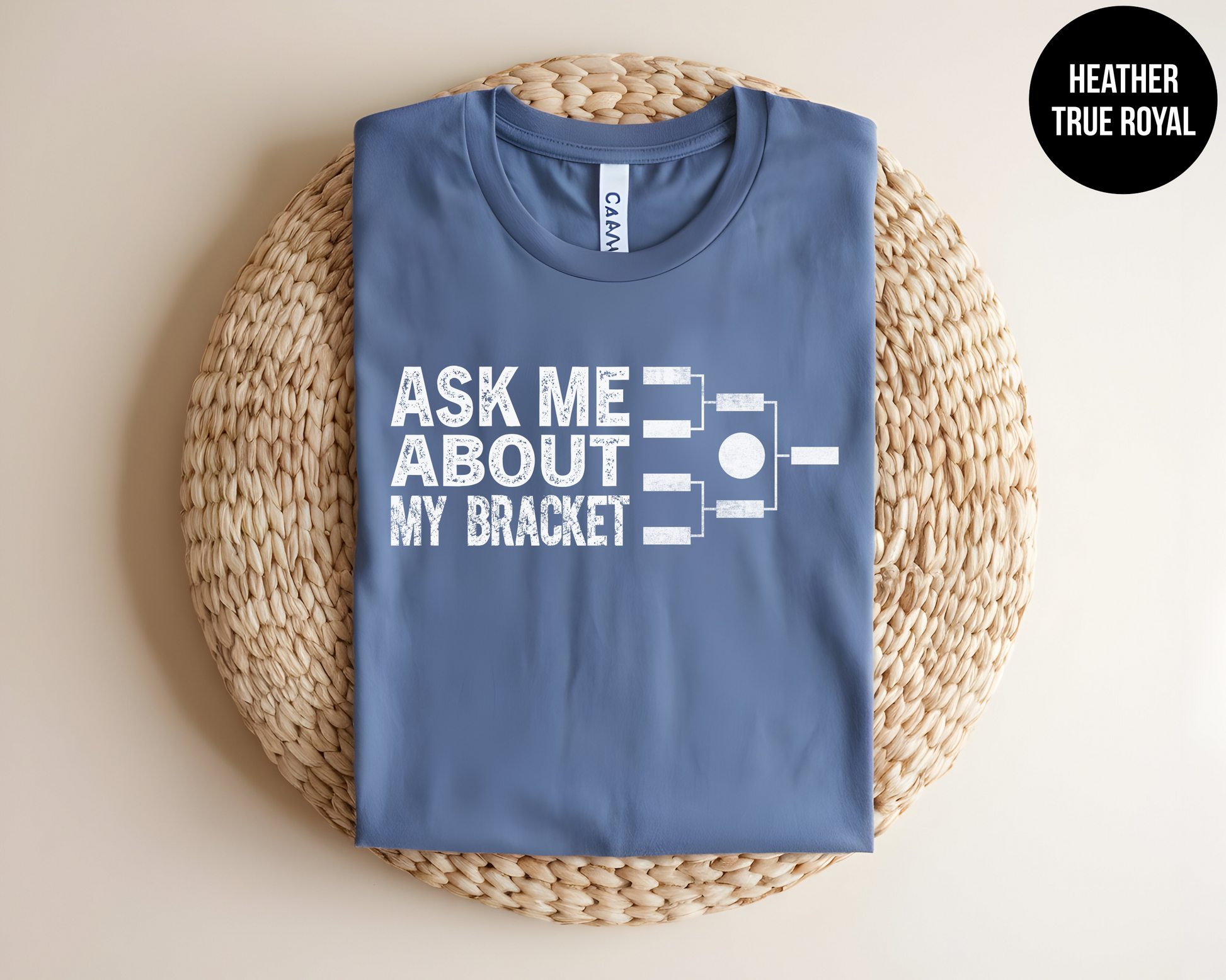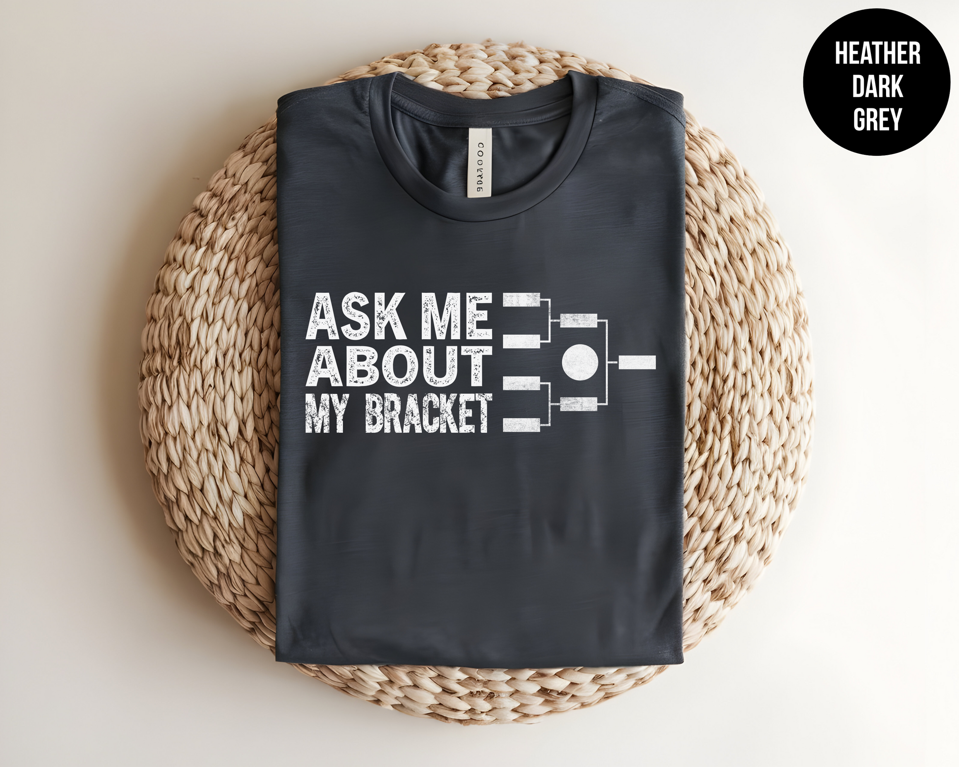 Show off your love for college basketball with this quirky shirt from the Shirt Republic. Perfect for March Madness, this "Ask Me About My Bracket" shirt is sure to get some laughs and spark some fun conversations. A must-have for any sports fan!