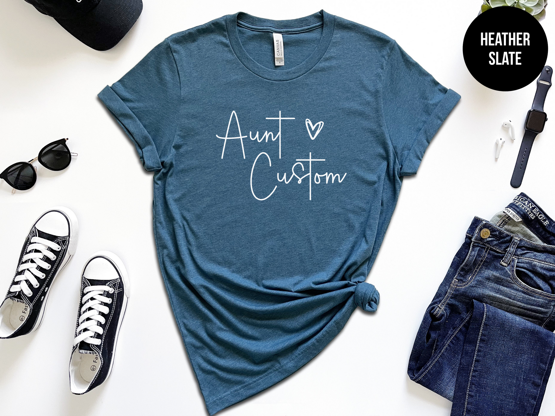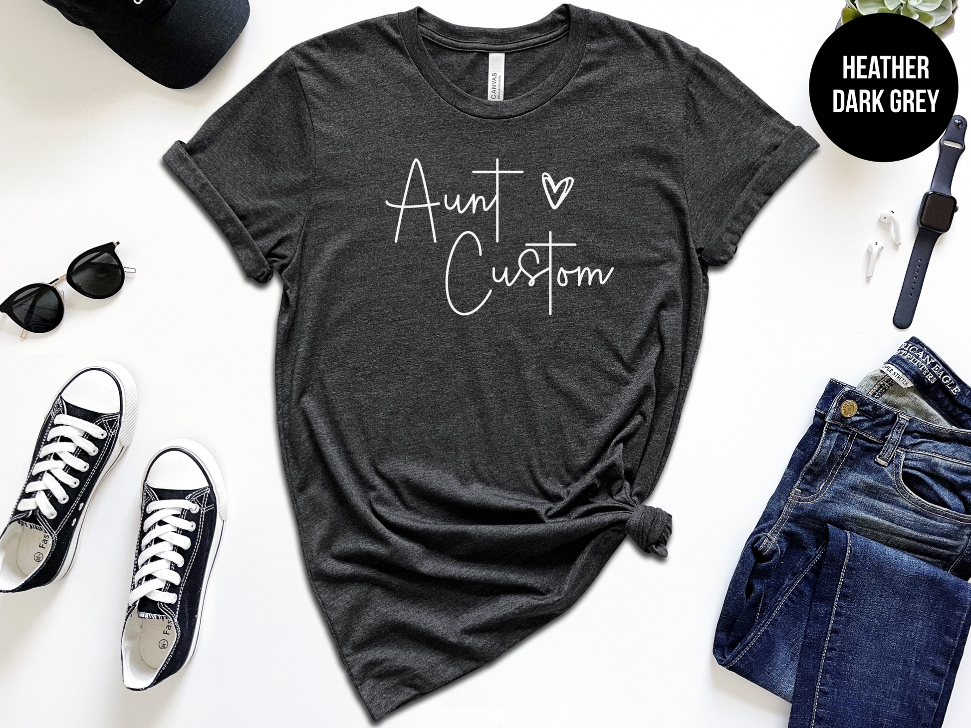 Make a statement with this one-of-a-kind Aunt Custom shirt - perfect for that special aunt in your life. Customize the name, making it truly unique and tailored to her style. Perfect for birthdays, holidays, or just because! Hey, aunts need love too. Let her know with Aunt Custom.