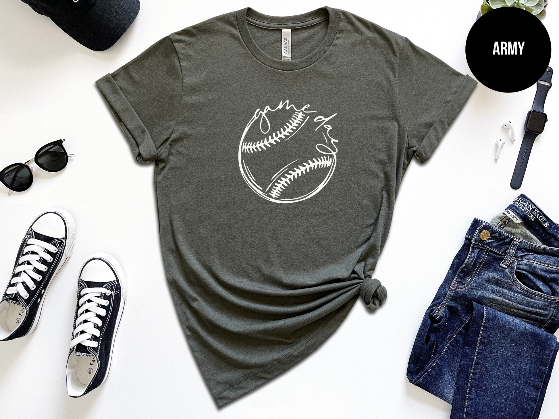 Make game day extra special with our Baseball Game Day Shirt! Perfect for baseball moms and dads alike, this poly-cotton blend is so cozy you'll never want to take it off. So don't strike out - show your support in style! #GamedayReady