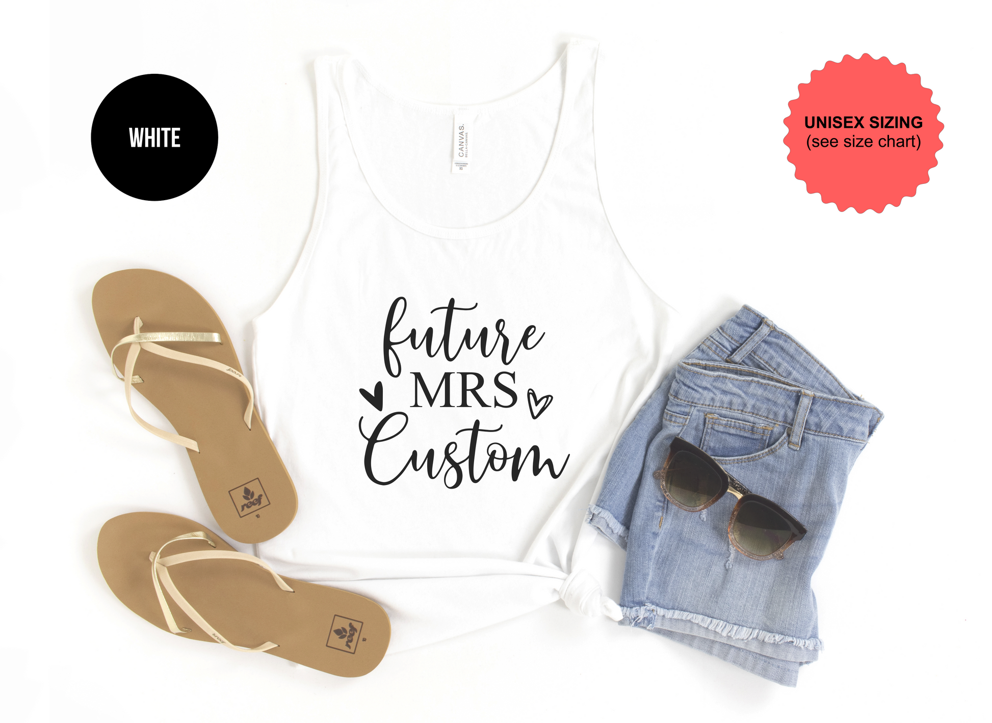Looking for a unique way to show off your future married status? Look no further than the customizable Future Mrs tank top from The Shirt Republic! This soft and comfortable tank is the perfect way to show off your excitement for your upcoming nuptials.