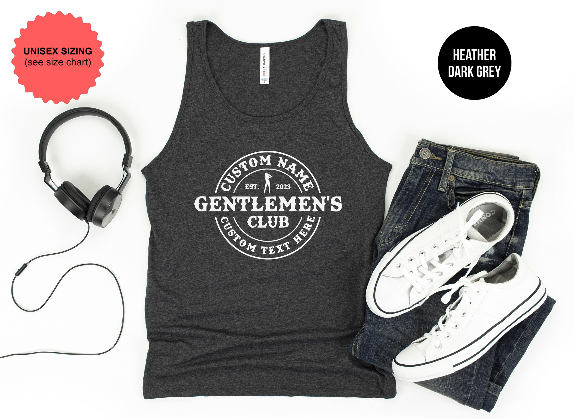 Take your style game to the next level with this custom Gentlemen's Club Tank Top from The Shirt Republic! Get ready for some serious laughter in this funny mens tank - you'll never get it wrong when you're dressed for success and ready to have some fun!
