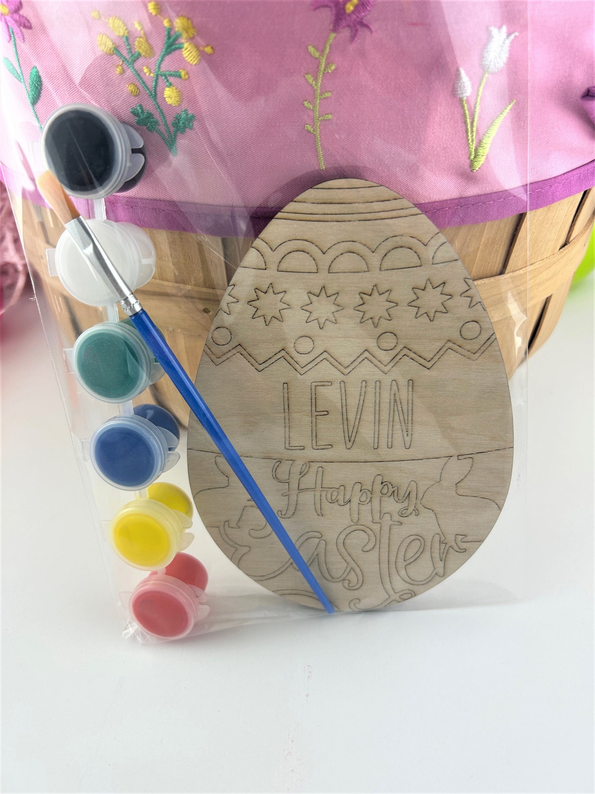 Looking for a fun and unique way to celebrate Easter? Look no further than our wooden paintable Easter eggs that can be customized to your child’s name! Measuring 6" x 4.25", each egg is carefully crafted and designed for an affordable way to add a personal touch to your Easter basket. Choose from 2 different 6-count paint palettes and let your kiddos creativity run wild. It's the perfect activity for kids and adults alike and makes a great Easter basket stuffer. If you're short on time, don't worry! Our personalized paintable Easter eggs are shipped within 24 hours!