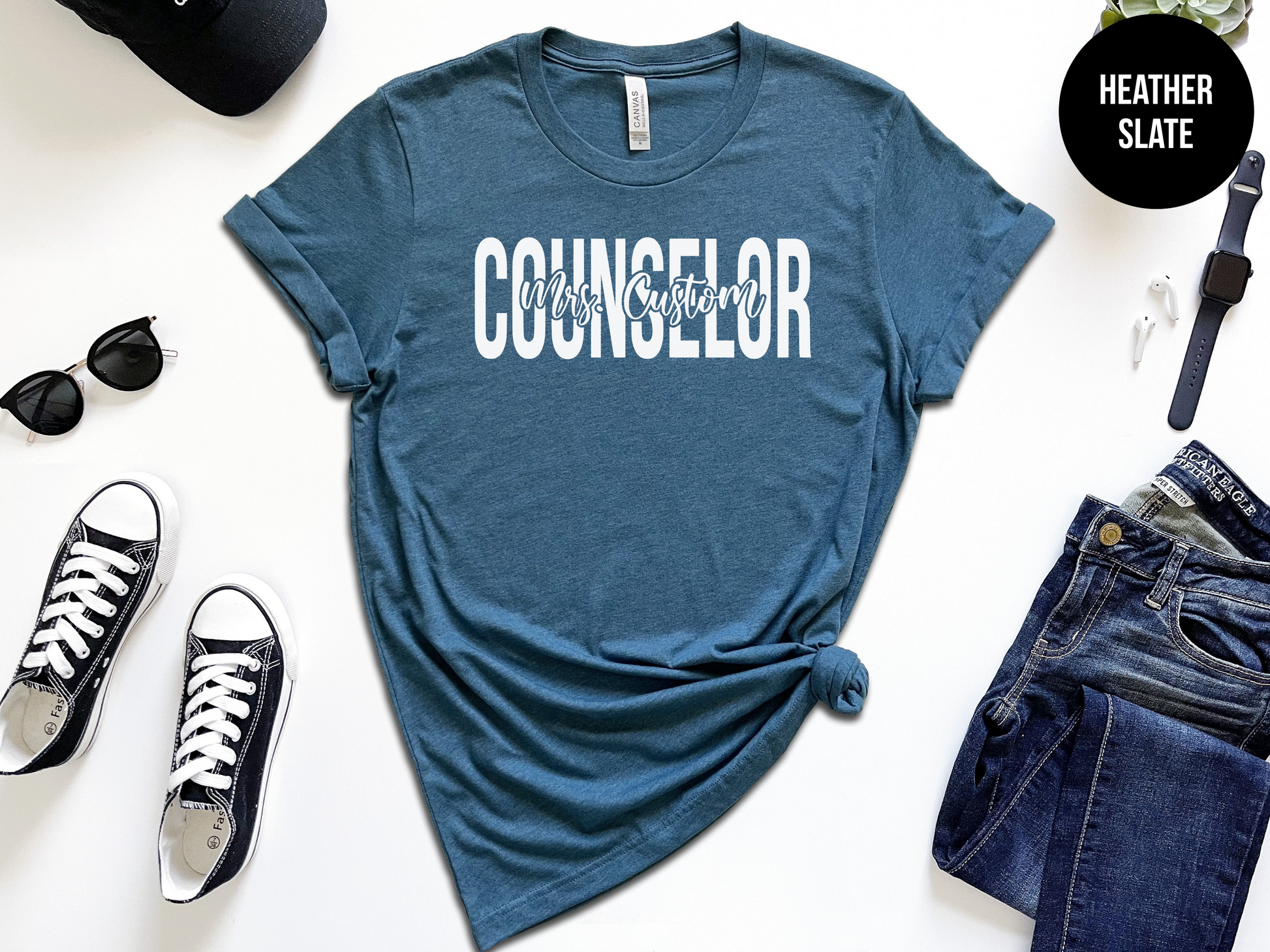 Look stylin' and be ready for anything in this fun Customized School Counselor Shirt from The Shirt Republic. Make it your own with your name, and customize it in the colors of your choice to suit your personality! Be ready for anything your students throw your way-- looking good and feeling great. Now don't be late for class!
