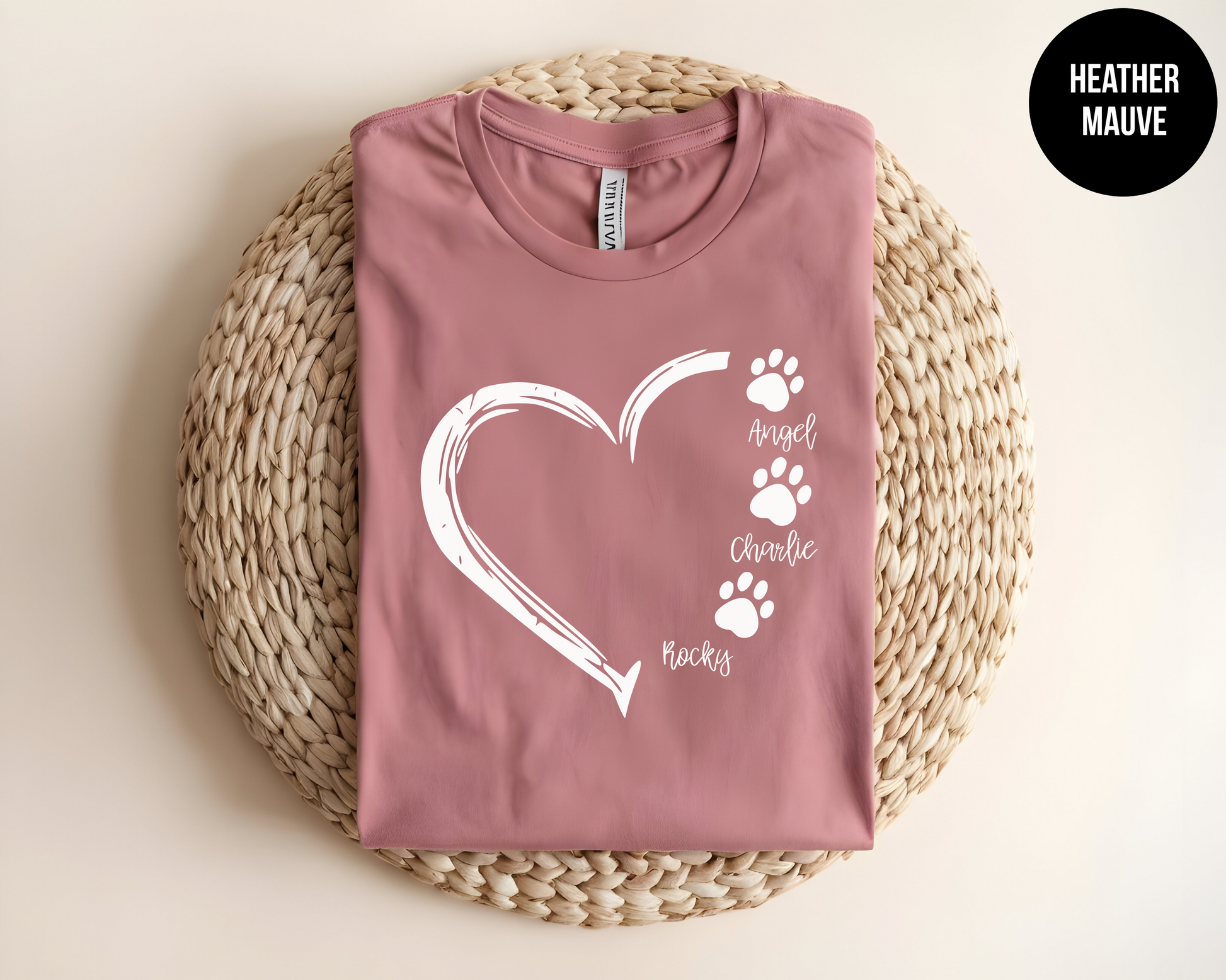Show off your love for your furry best friend with this customizable heart and dog paw print shirt! This heartfelt design features a stylish heart filled with adorable dog paw prints, with a special spot to personalize it with your dog's name. A perfect gift for dog moms, pet lovers, and anyone who wants to keep their pup close to their heart. Available in multiple sizes and colors—because every dog deserves to be celebrated!