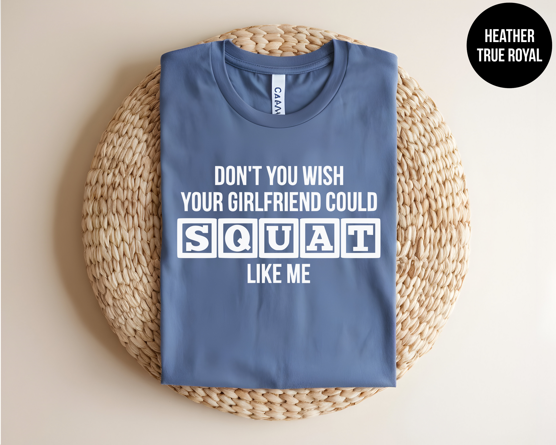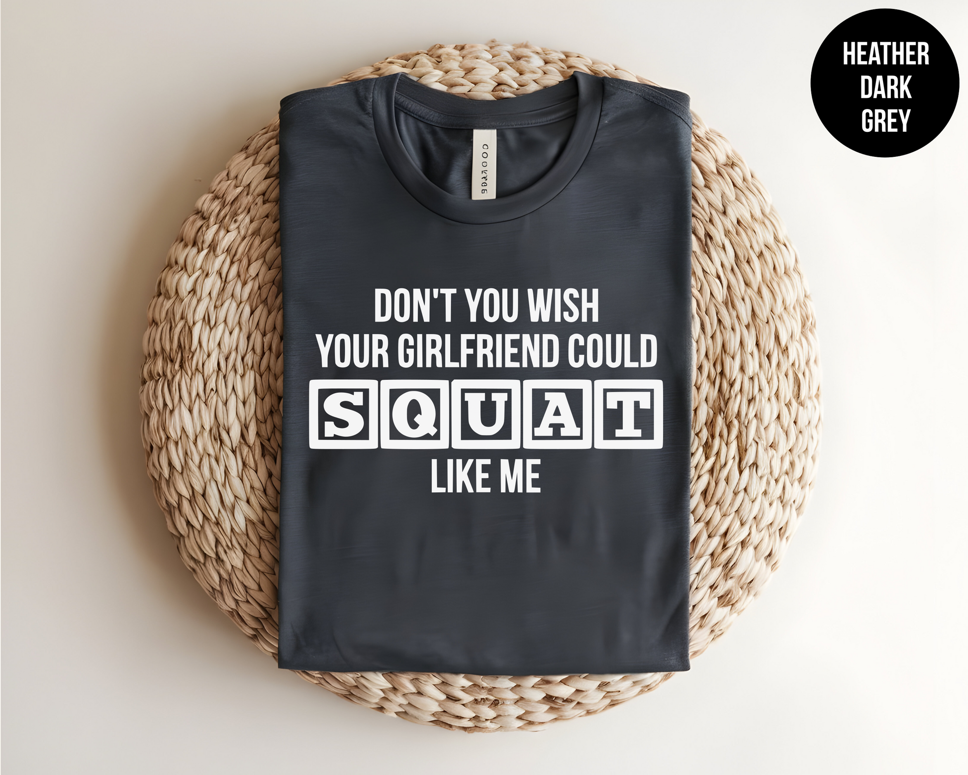 “Don’t You Wish Your Girlfriend Could Squat Like Me” printed in bold text