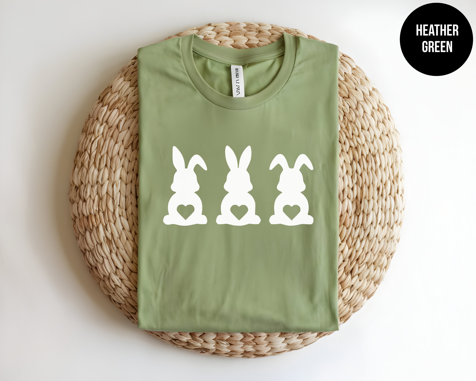 Celebrate Easter in style with this adorable Easter-themed shirt featuring three playful bunnies! Each bunny showcases a unique personality—one with a flower crown, another holding a decorated Easter egg, and the third with cute floppy ears. Surrounding them are pastel-colored eggs, spring flowers, and a touch of festive magic. Perfect for Easter gatherings, egg hunts, or just spreading some springtime joy!