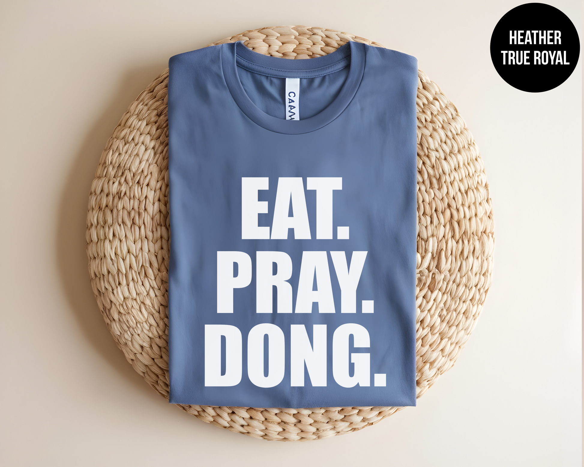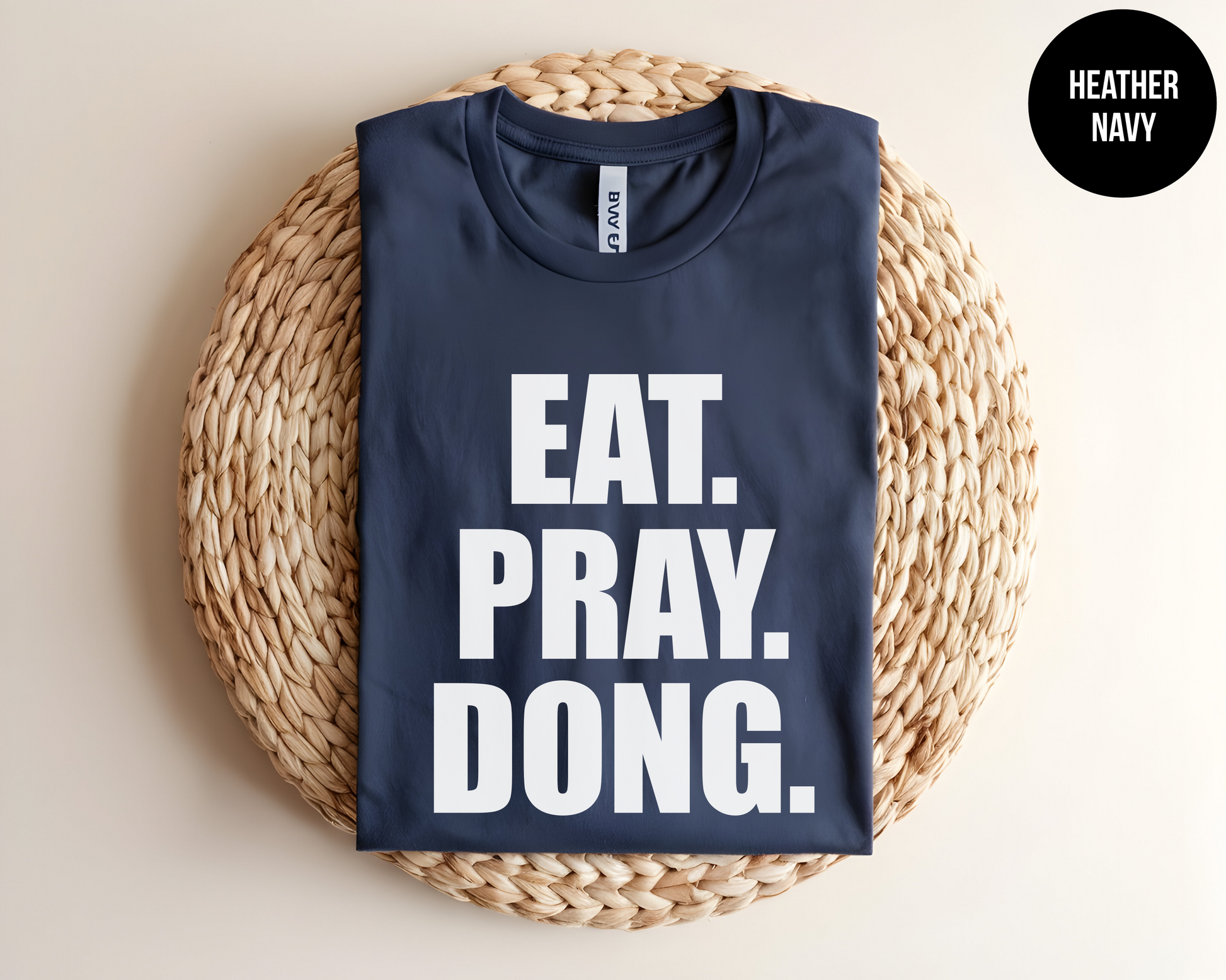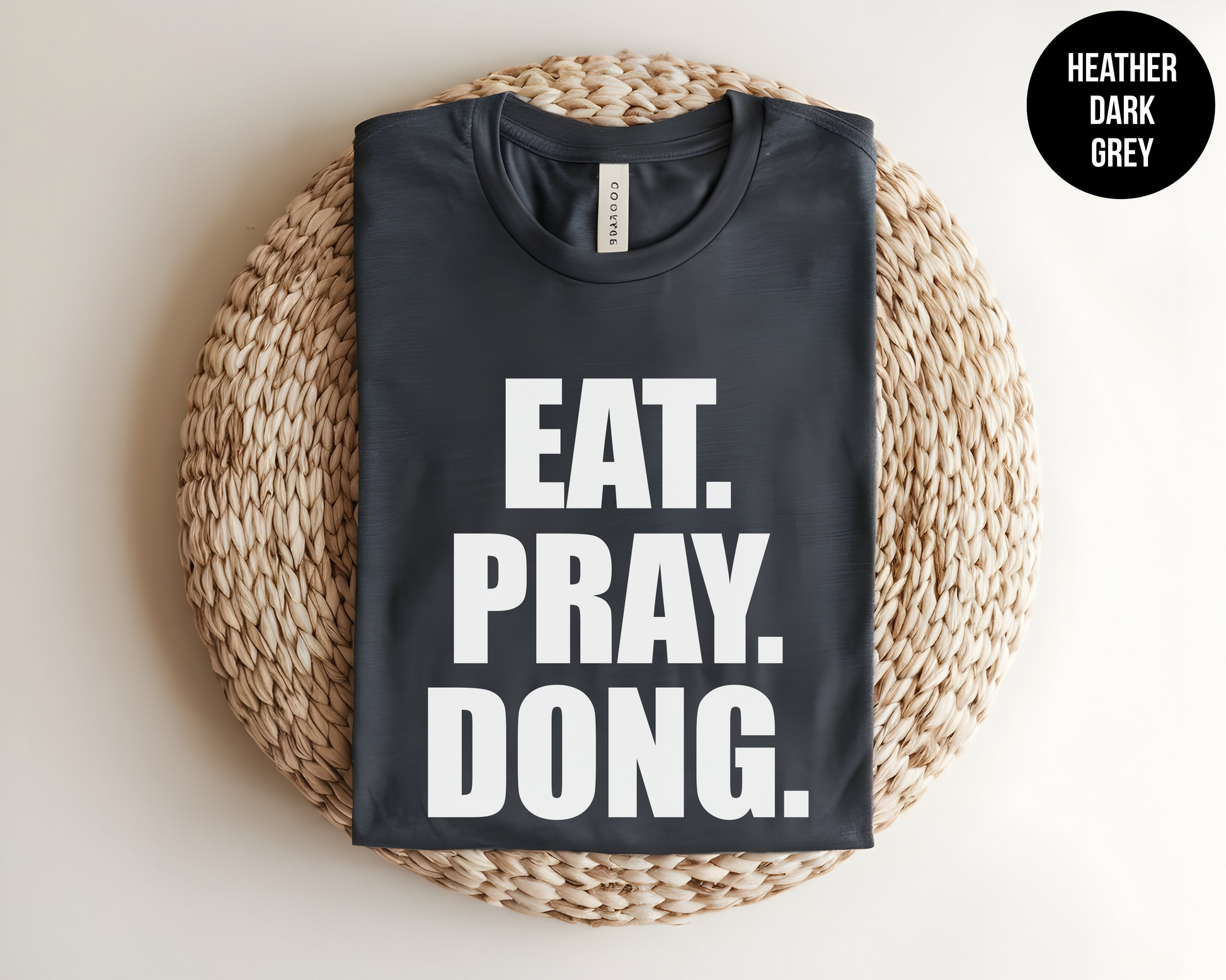 Bold, funny, and a little cheeky—this "Eat. Pray. Dong." shirt is perfect for those who love a good laugh and aren’t afraid to show it! Whether you're out with friends, hitting the gym, or just embracing life with humor, this shirt makes a hilarious statement. Designed for comfort and style, it's great for casual wear, bachelor parties, or as a fun gift for someone with a playful sense of humor. Get ready for laughs and double takes—because this shirt is sure to turn heads!
