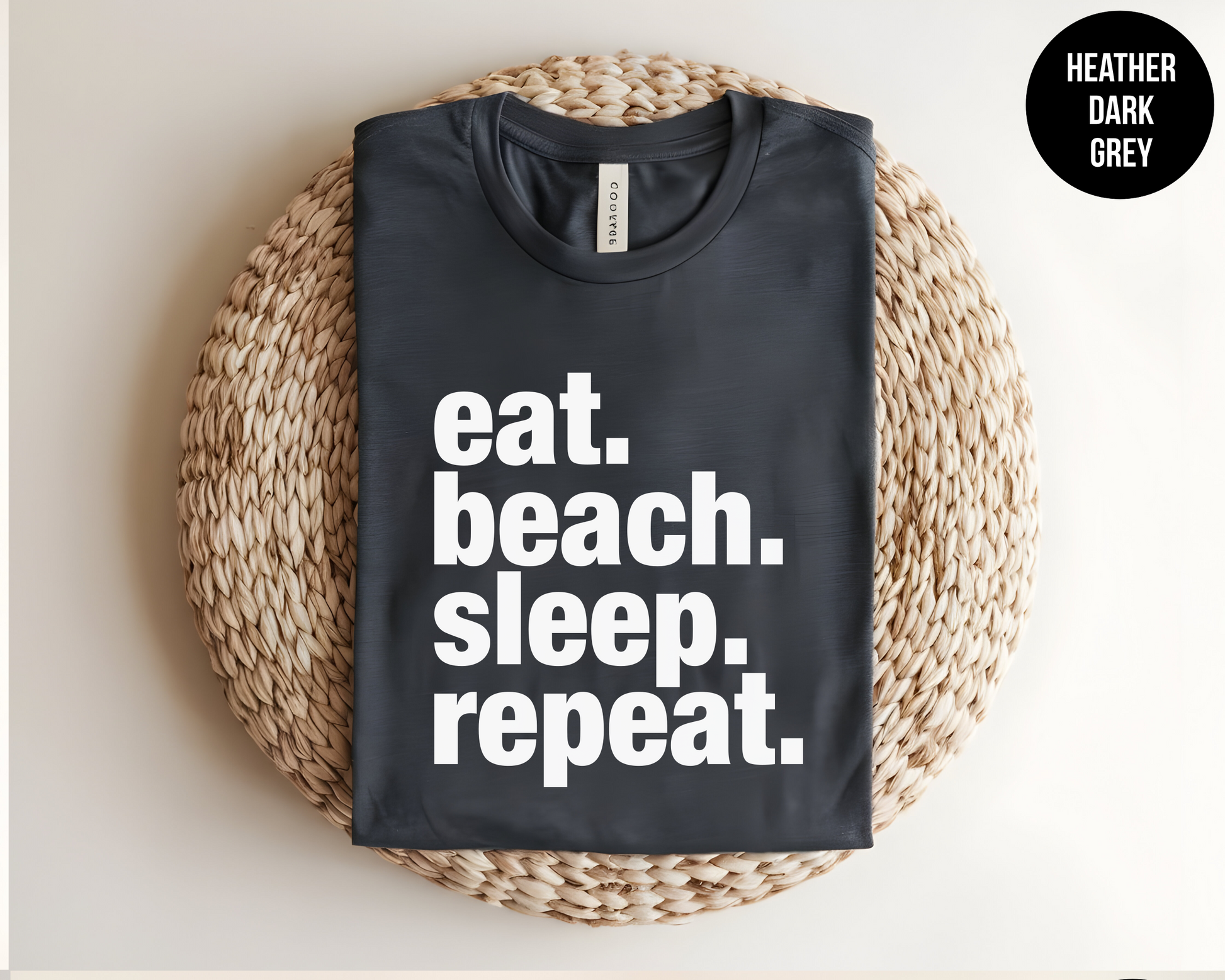 “Eat Beach Sleep Repeat” printed on front