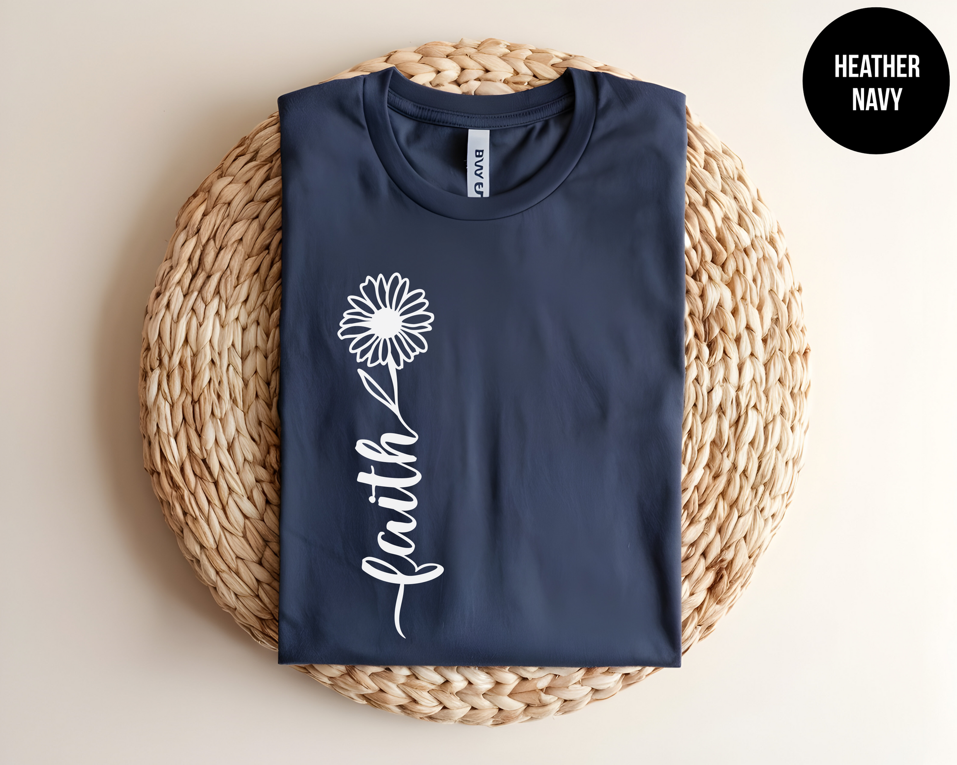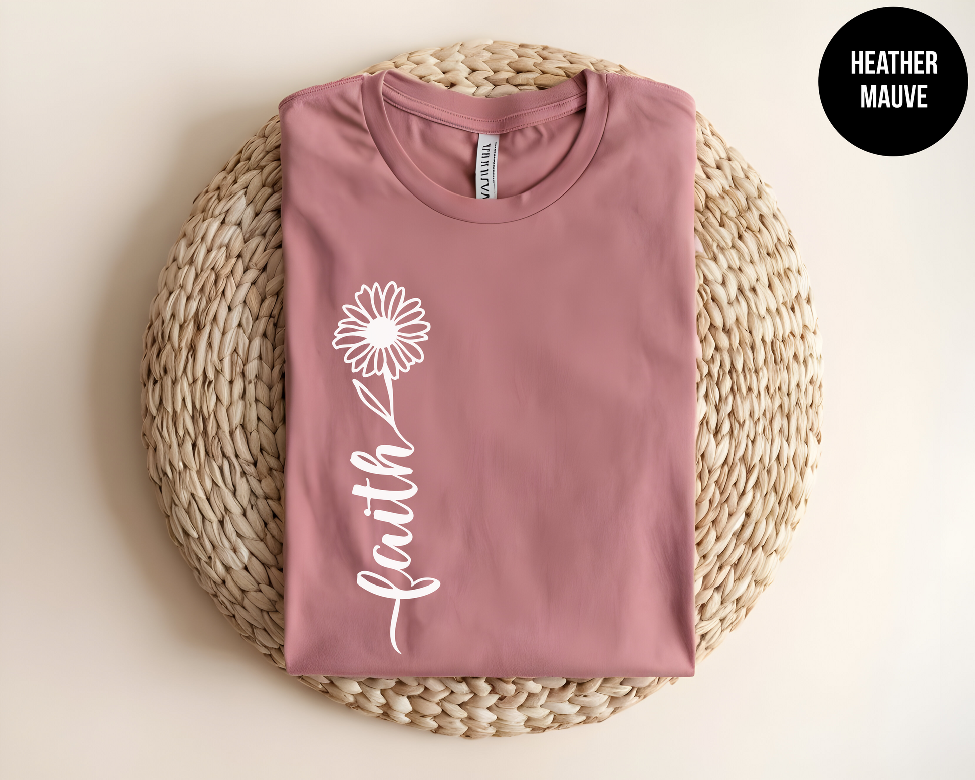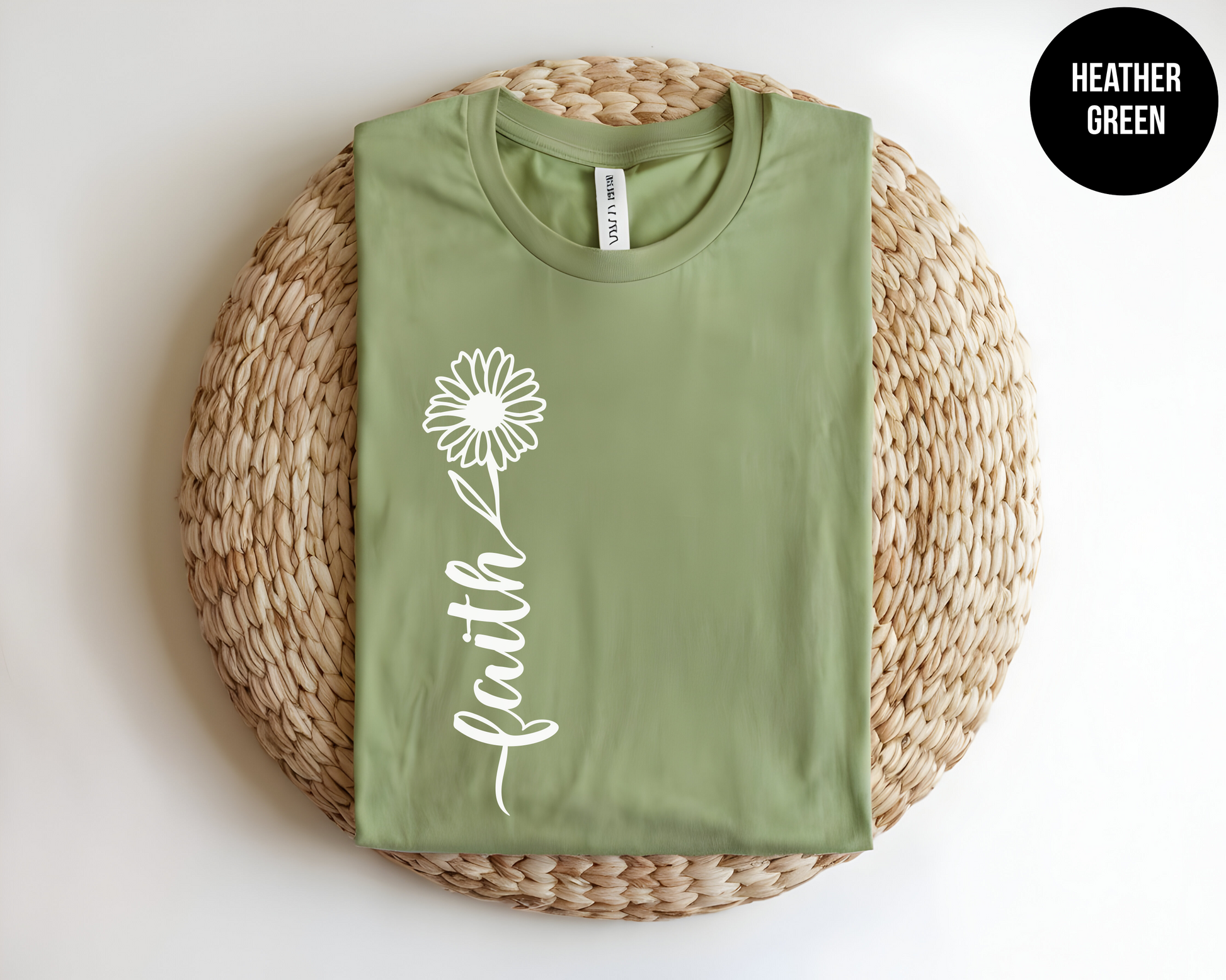 Embrace the beauty of faith with this ‘Faith Flower’ shirt, featuring a delicate floral design where the stem gracefully forms the word ‘Faith.’ This elegant and meaningful tee is perfect for those who find strength in their beliefs and love a touch of nature-inspired style. Whether you're wearing it for inspiration, as a daily reminder of hope, or as a gift for someone special, this shirt is a beautiful expression of faith and positivity.
