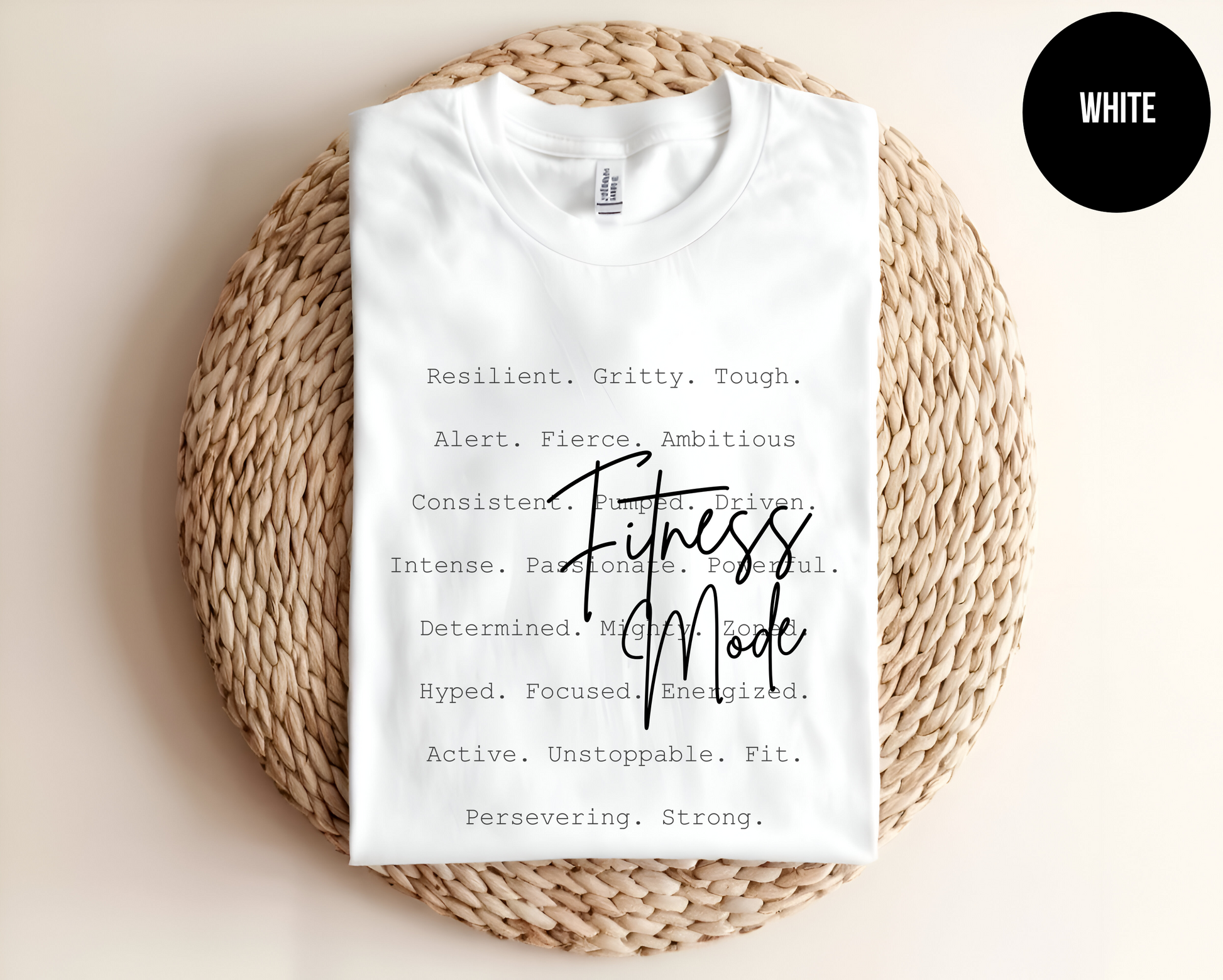 Whether you’re hitting a new PR, crushing a HIIT session, or finding your flow in the studio, the "Fitness Mode" tee is designed to keep your mindset as sharp as your form. Featuring a curated list of athlete attributes—from Resilient and Gritty to Unstoppable—this shirt is more than just gym wear; it’s your wearable hype-man.