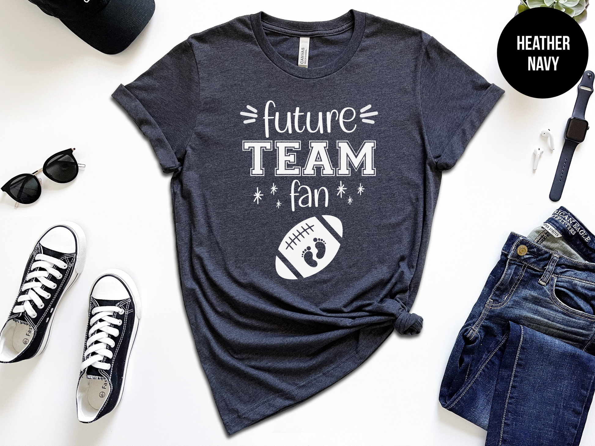 Welcome your little quarterback in style with this Football Pregnancy Custom Shirt from The Shirt Republic! This shirt is the perfect way to announce your bundle of joy with a bit of athletic flair. Comfortable and stylish, this shirt will make pregnancy even more fun! Go team!