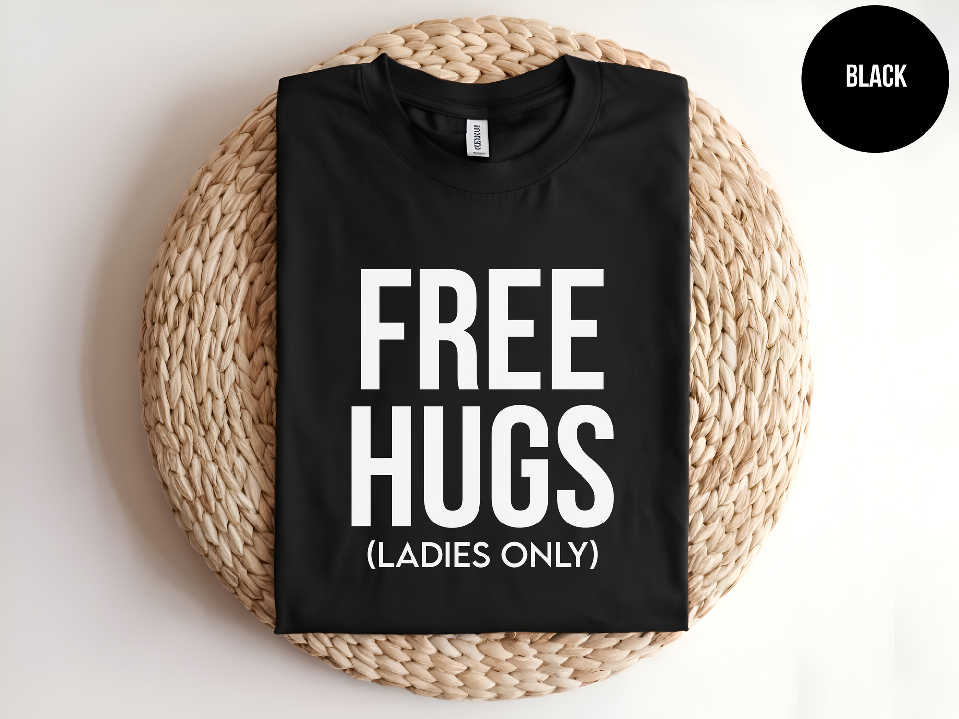 Looking for a funny and flirty shirt that’s sure to get some laughs? This "Free Hugs (Ladies Only)" T-shirt is the perfect conversation starter! Whether you're rocking it at a party, a casual night out, or just for fun, this bold and playful design lets everyone know where you stand on free hugs. Made from soft, high-quality fabric, this tee is comfortable, stylish, and guaranteed to turn heads.
