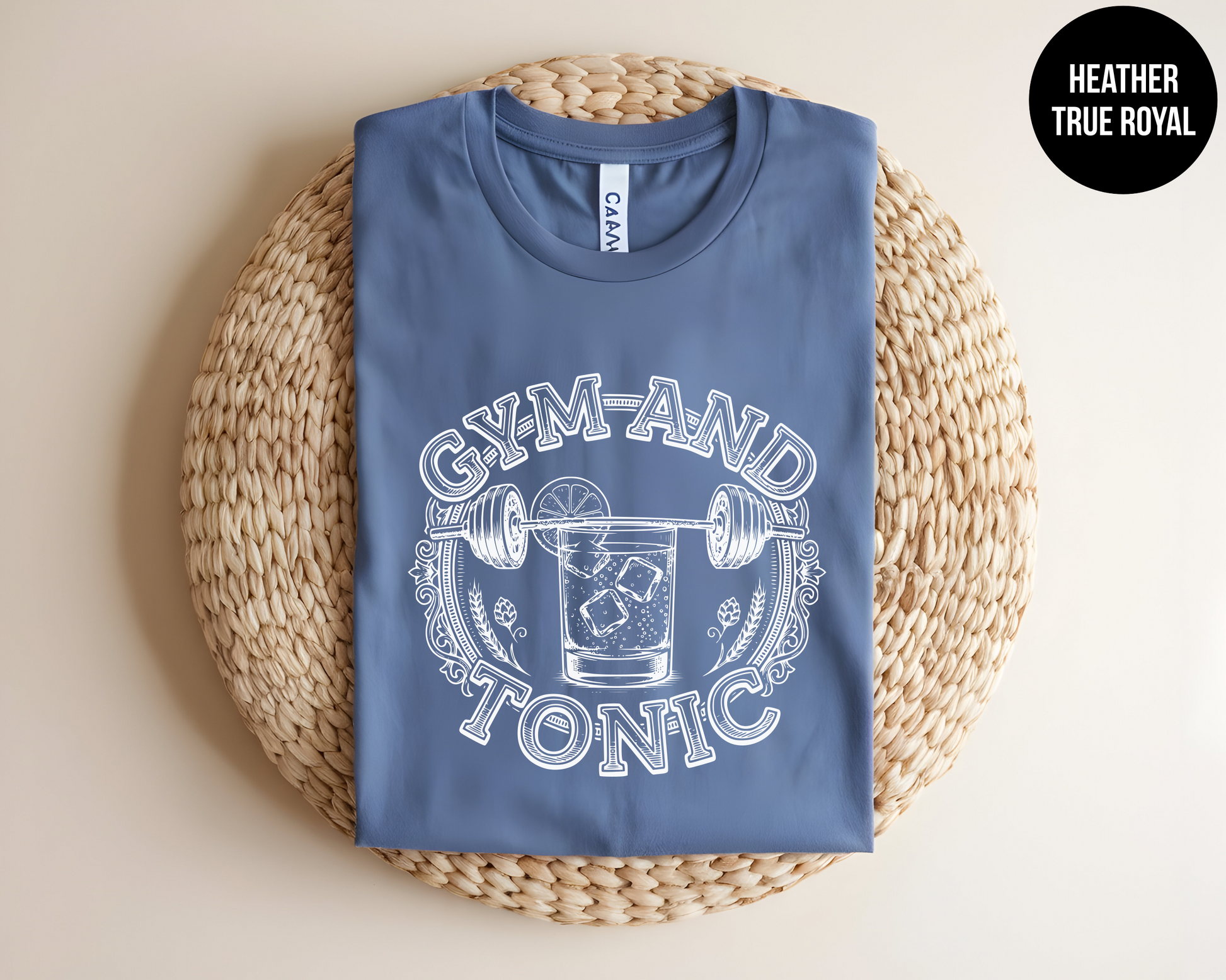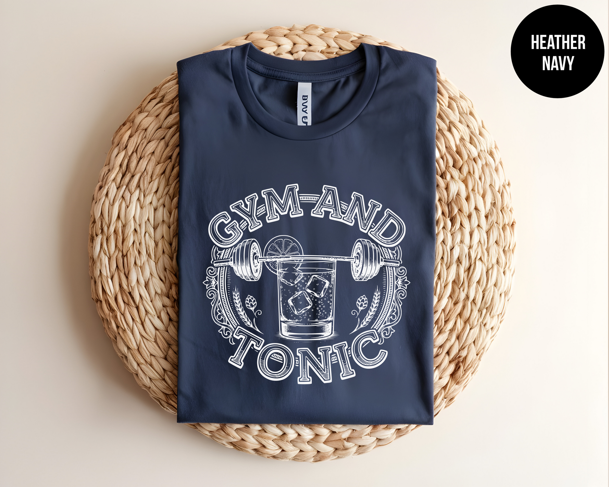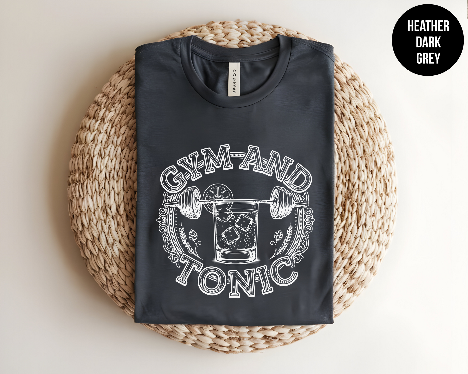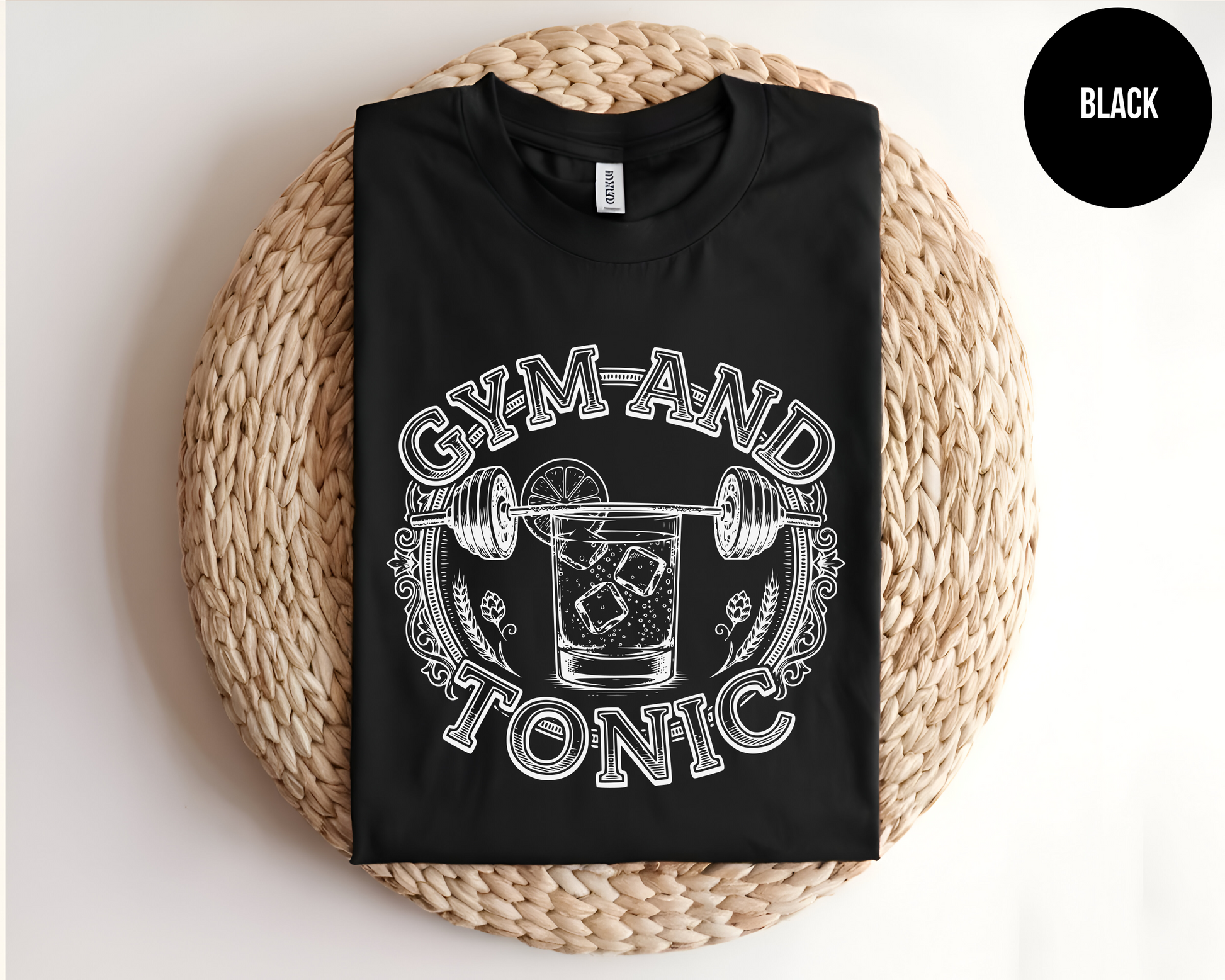 Get ready to sweat and sip in style with our Gym and Tonic T-Shirt! Featuring a witty barbell-and-cocktail graphic, this shirt is perfect for bringing some humor to your fitness routine or lounging after a workout.