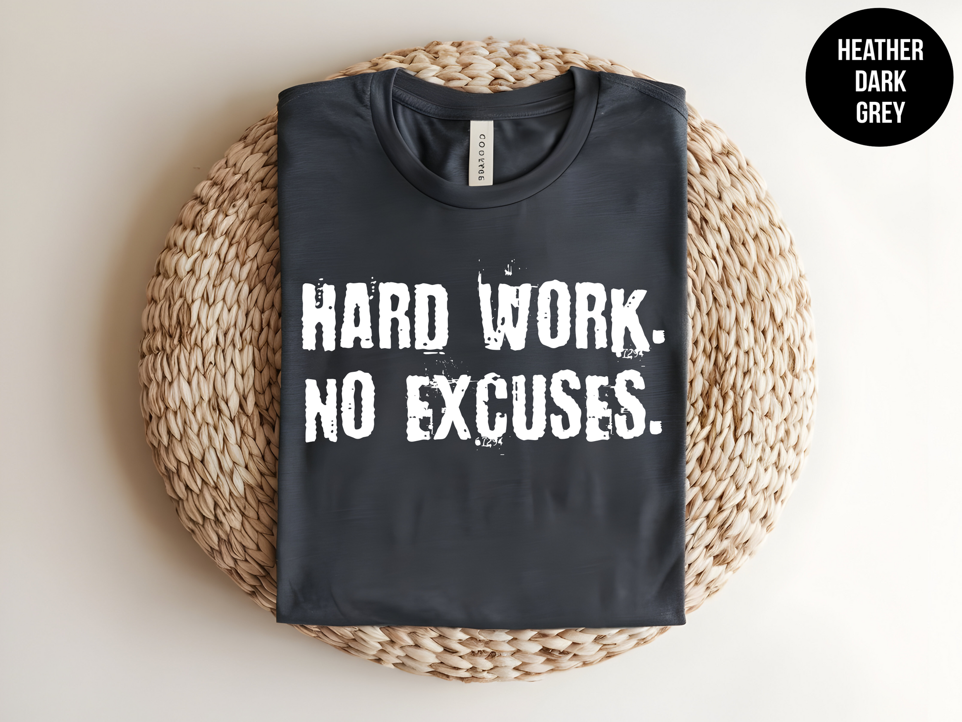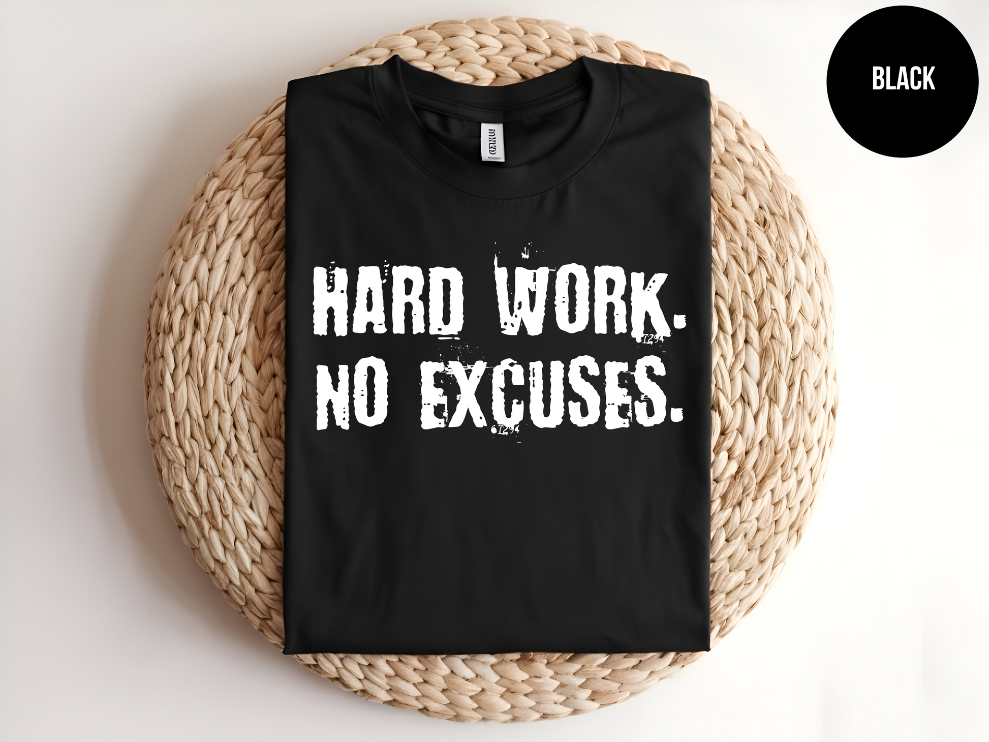 Push past limits and stay focused with this "Hard Work. No Excuses." t-shirt! Designed for those who give 110% in everything they do, this tee is perfect for athletes, gym-goers, entrepreneurs, and anyone dedicated to their grind. Whether you're hitting the weights, building your dream, or just living with a no-excuses mindset, this shirt keeps you motivated.