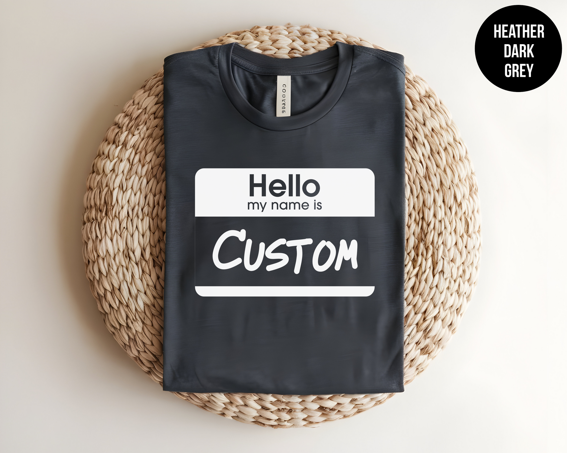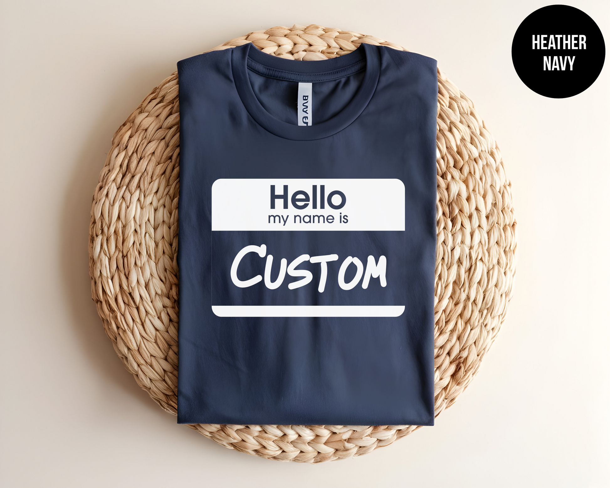 Introducing our "Hello, My Name Is" Customizable Shirt! Perfect for parties, events, or just for fun, this shirt lets you personalize it with any name you choose. Whether you’re making a statement or adding a humorous twist to your outfit, this shirt is a fun and unique way to showcase your personality.