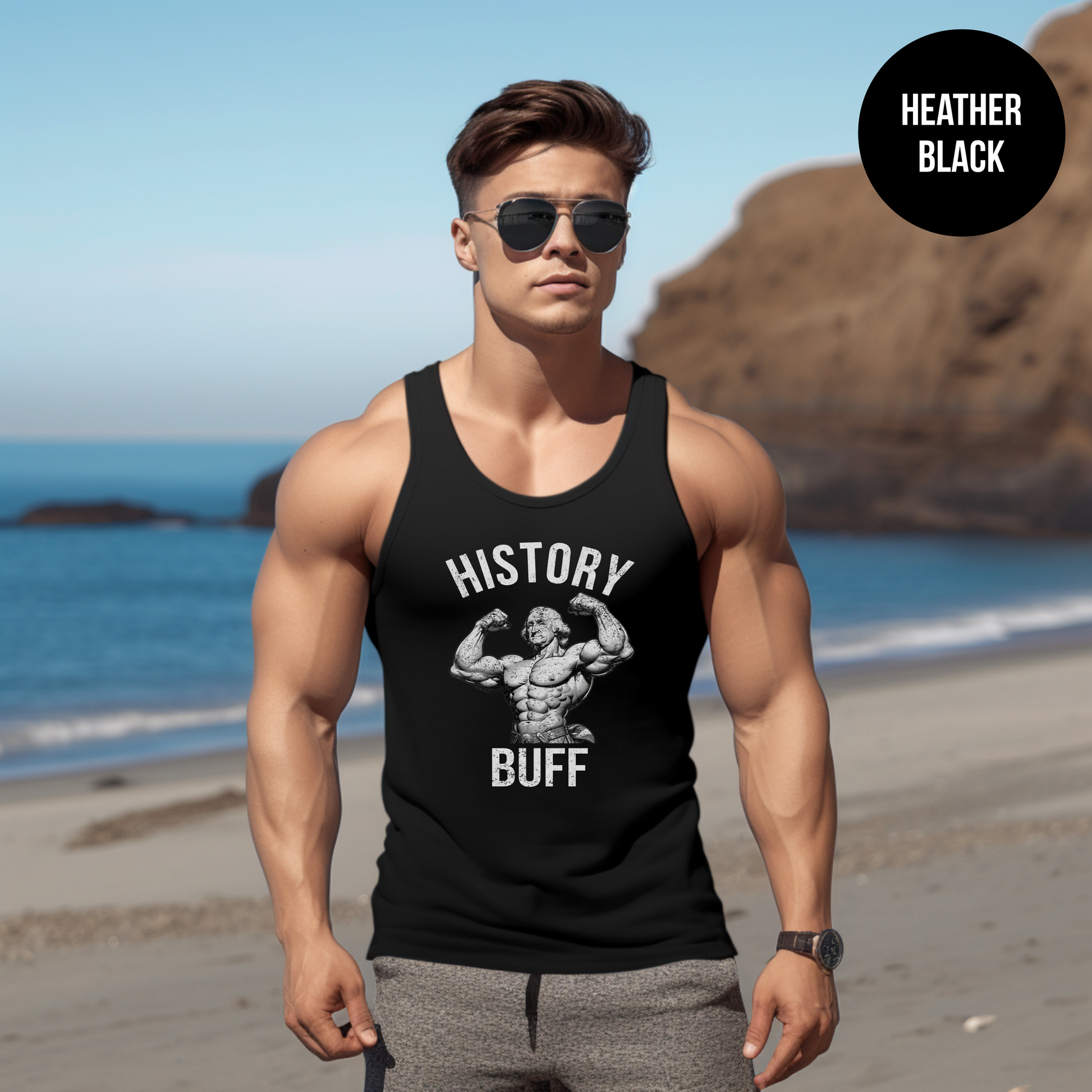 Celebrate your love for history in a unique and eye-catching way with the "History Buff" tank from The Shirt Republic. Featuring a bold and patriotic design of Washington flexing his muscles, this shirt is perfect for history enthusiasts and anyone with a sense of humor.