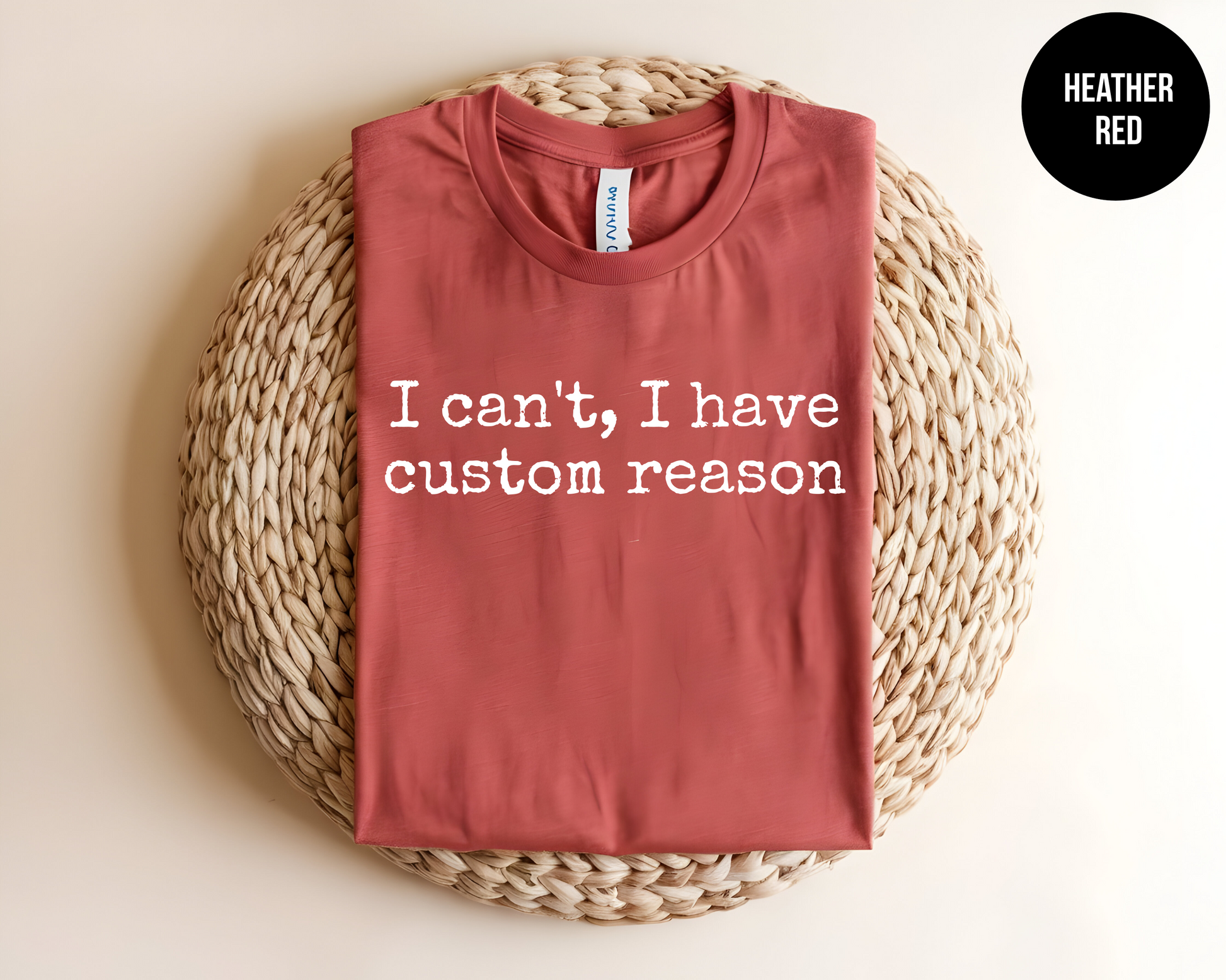 For the person who always has the perfect excuse, this "I Can’t. I Have [Custom Text]" t-shirt lets you personalize your go-to reason! Whether it's work, yoga, kids, wine night, or even just "introverting", this fun and stylish tee makes it clear that you've got prior commitments.