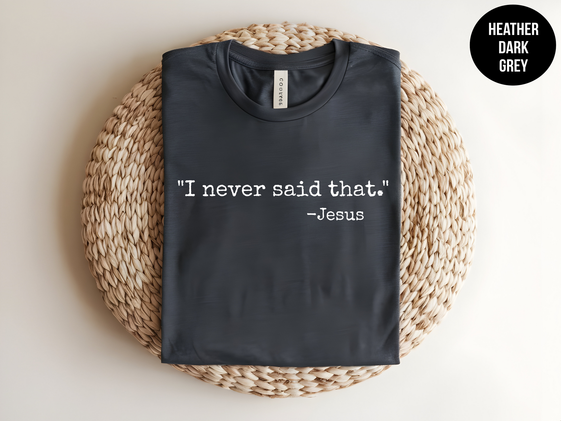 Add a little humor and truth to your faith-based wardrobe with this "I Never Said That" – Jesus t-shirt! ✝️😂 This witty design is perfect for Christians who love a good laugh while keeping it real about what Jesus actually taught. Whether you wear it to church, Bible study, youth group, or everyday life, this tee is a great conversation starter and a fun way to share your faith with a little biblical humor.