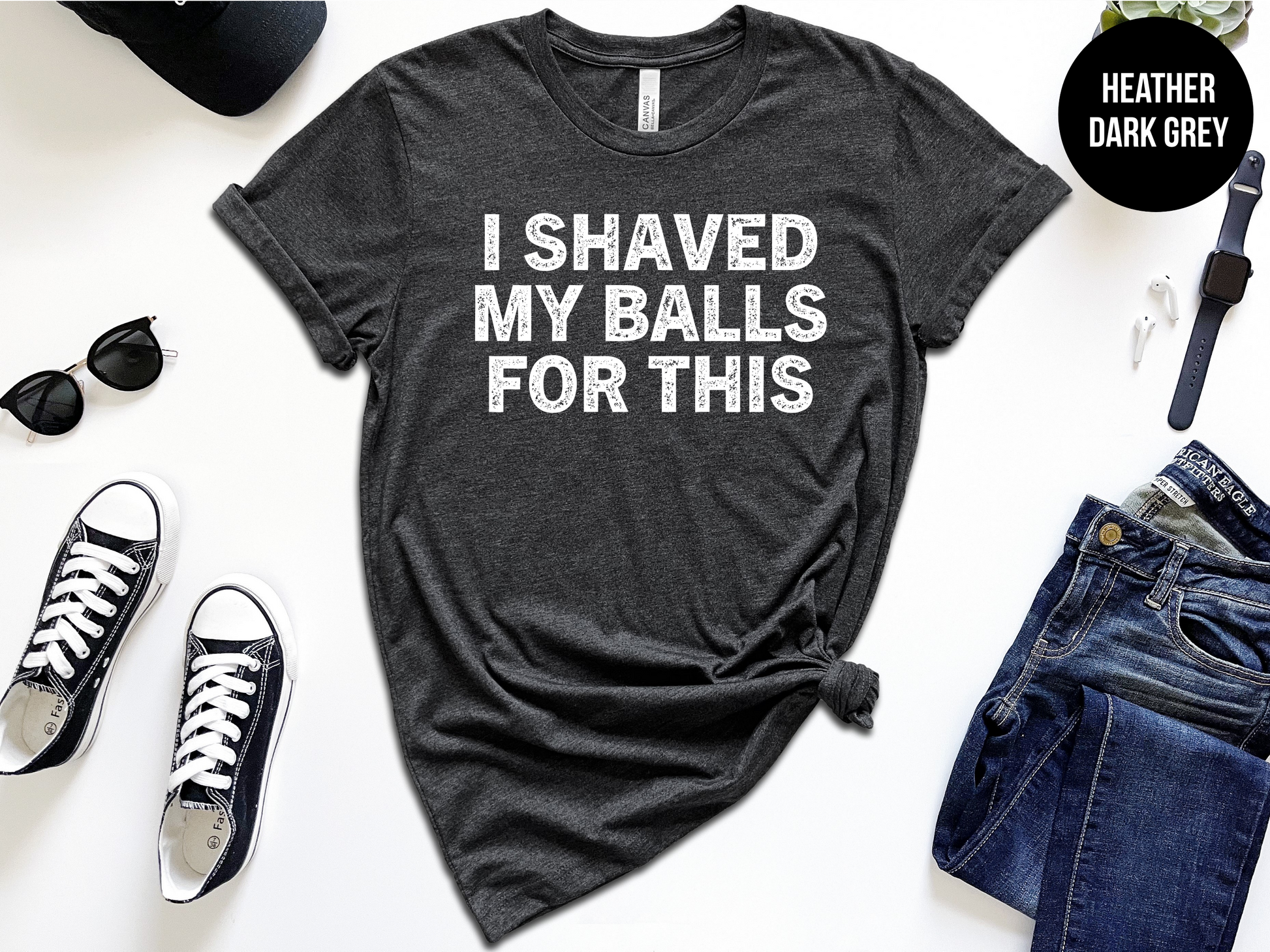 Feel like it's time to shave off a few of life's burdens? This quirky men's t-shirt from The Shirt Republic will give you a laugh or two. Show off your playful side with this unique and humorous design, and enjoy the comfy fit of this funny t-shirt. I Shaved My Balls For This!