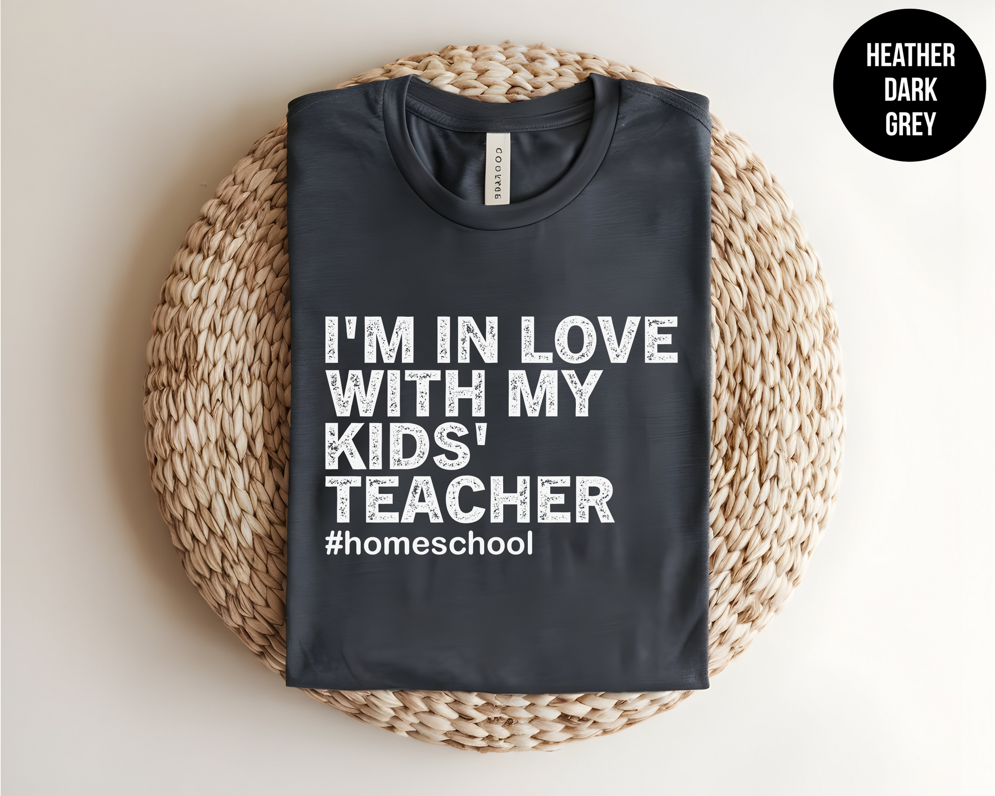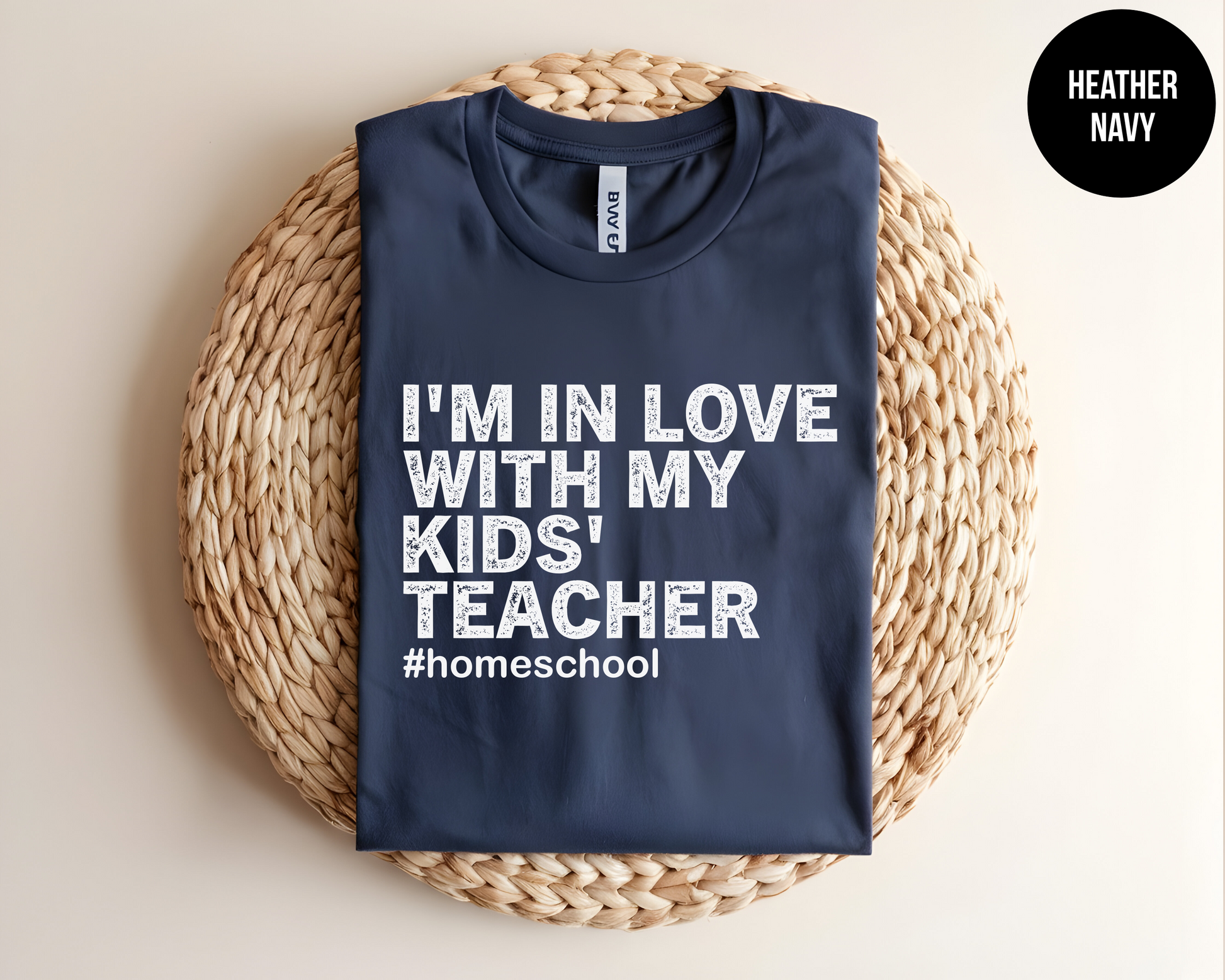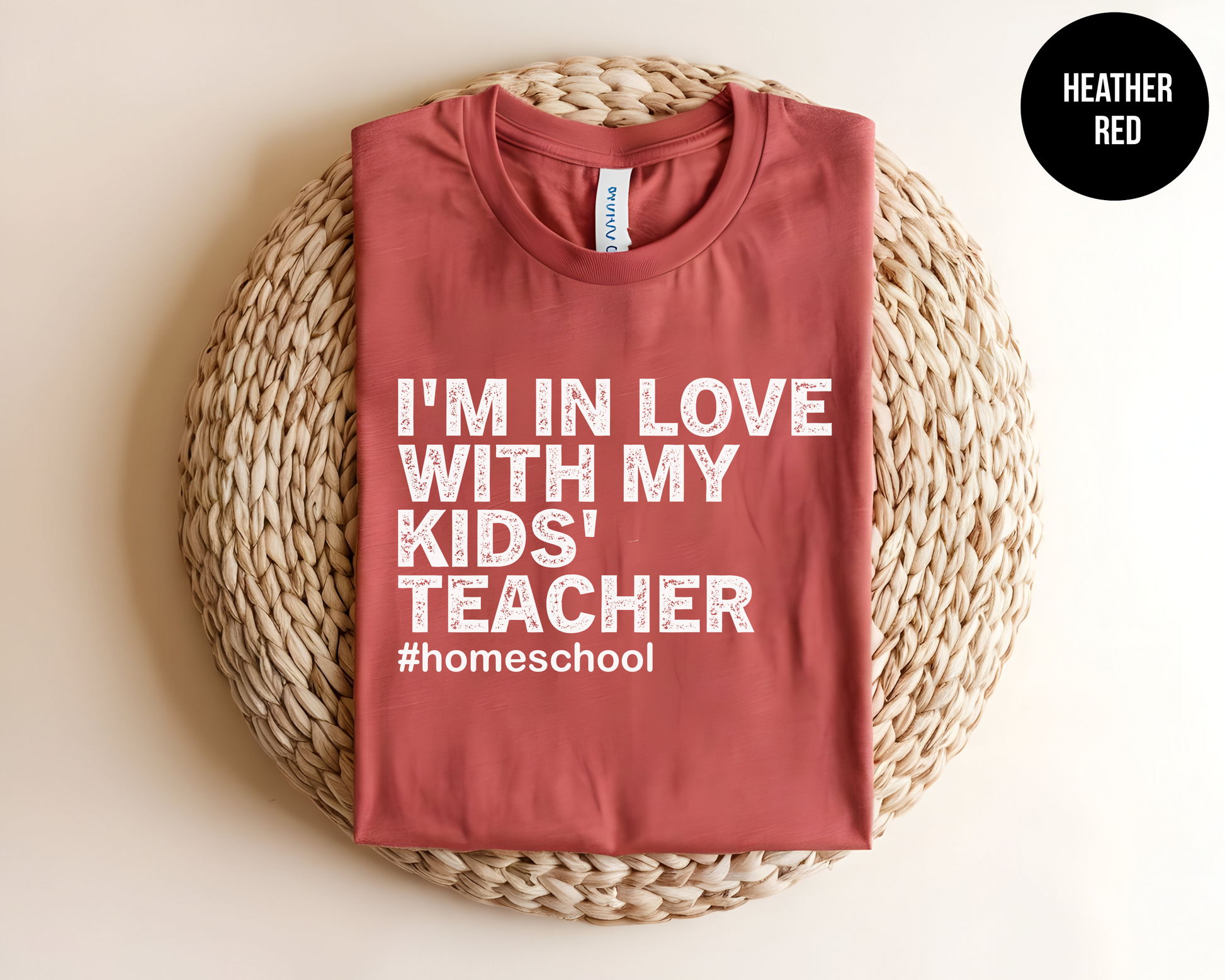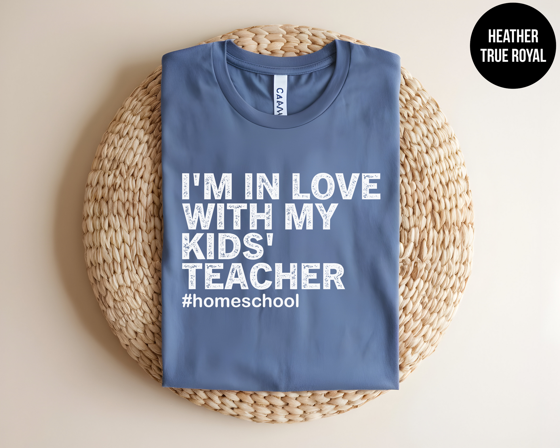 Declare your admiration for the real MVP of the homeschool classroom β YOU β with this hilarious "I'm In Love With My Kids' Teacher #homeschool" shirt.