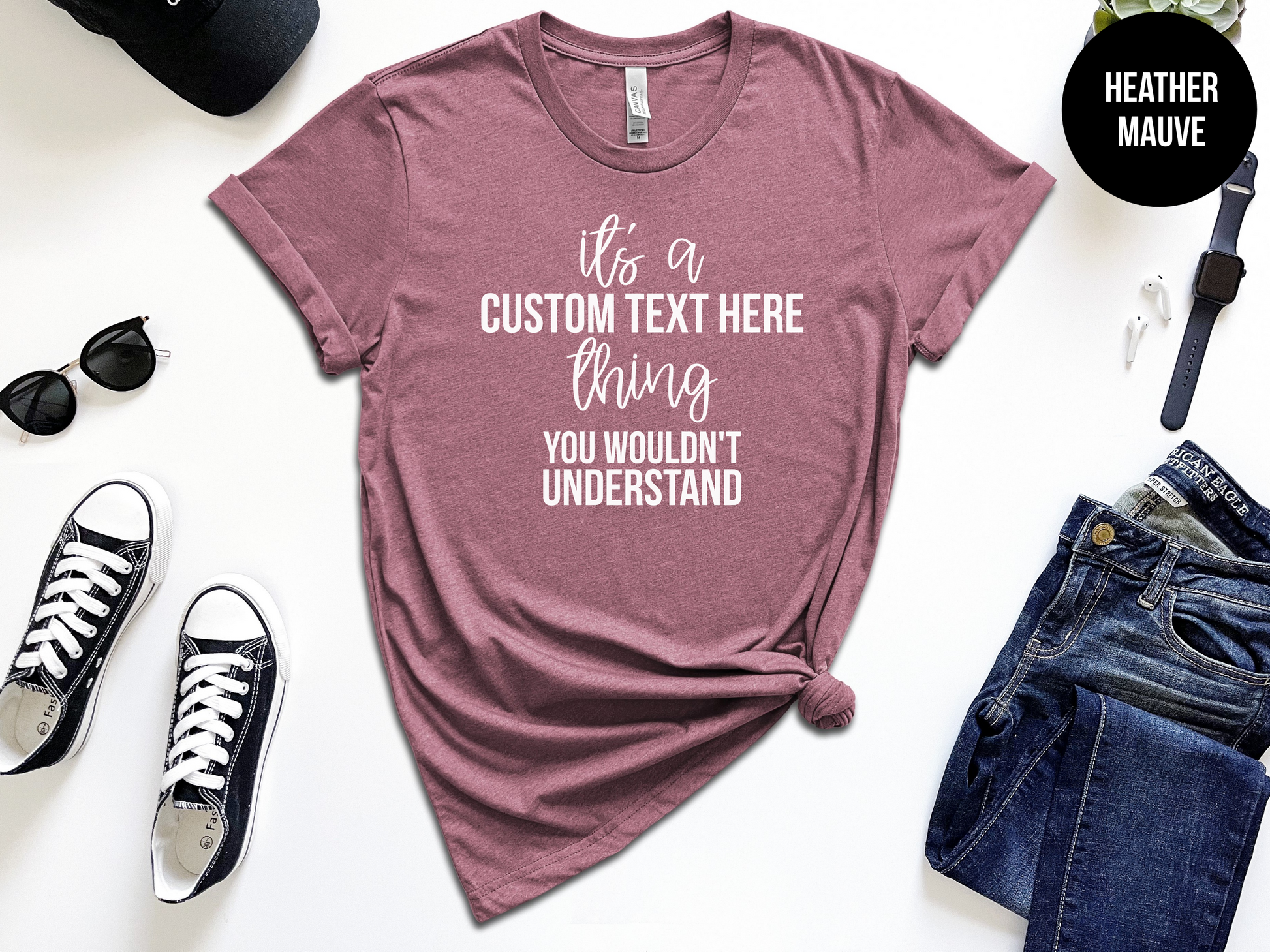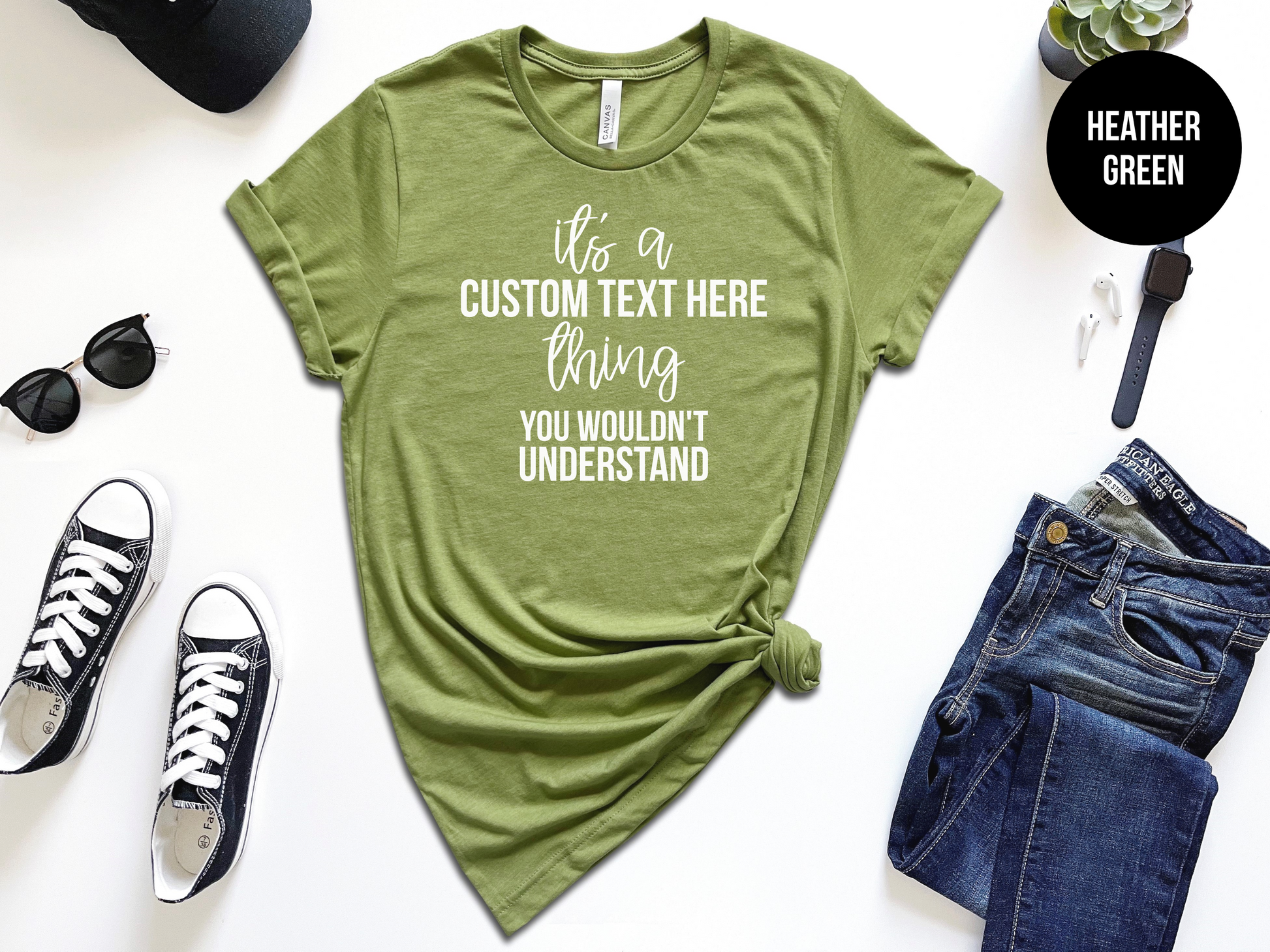 Show off your individual style with our customizable "It's a Custom Thing" shirt from The Shirt Republic! This one-of-a-kind shirt allows you to customize text to express the real you. It's like wearing a part of your personality - without all the awkwardness. Get creative and try something new. It'll be the coolest custom 'thing' you ever wear!