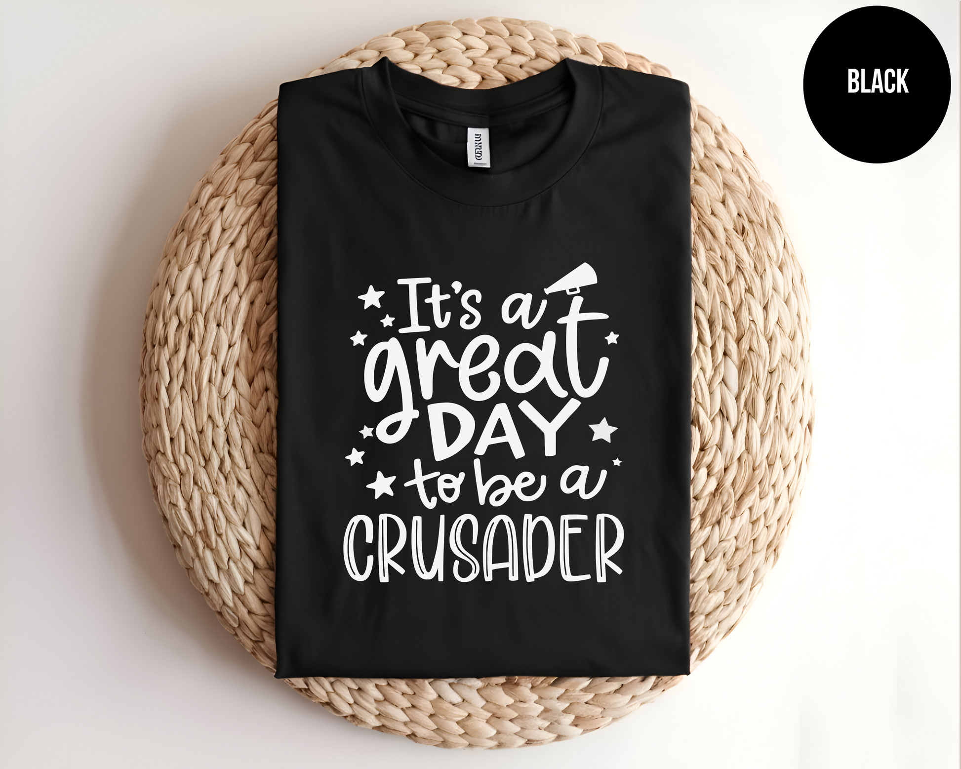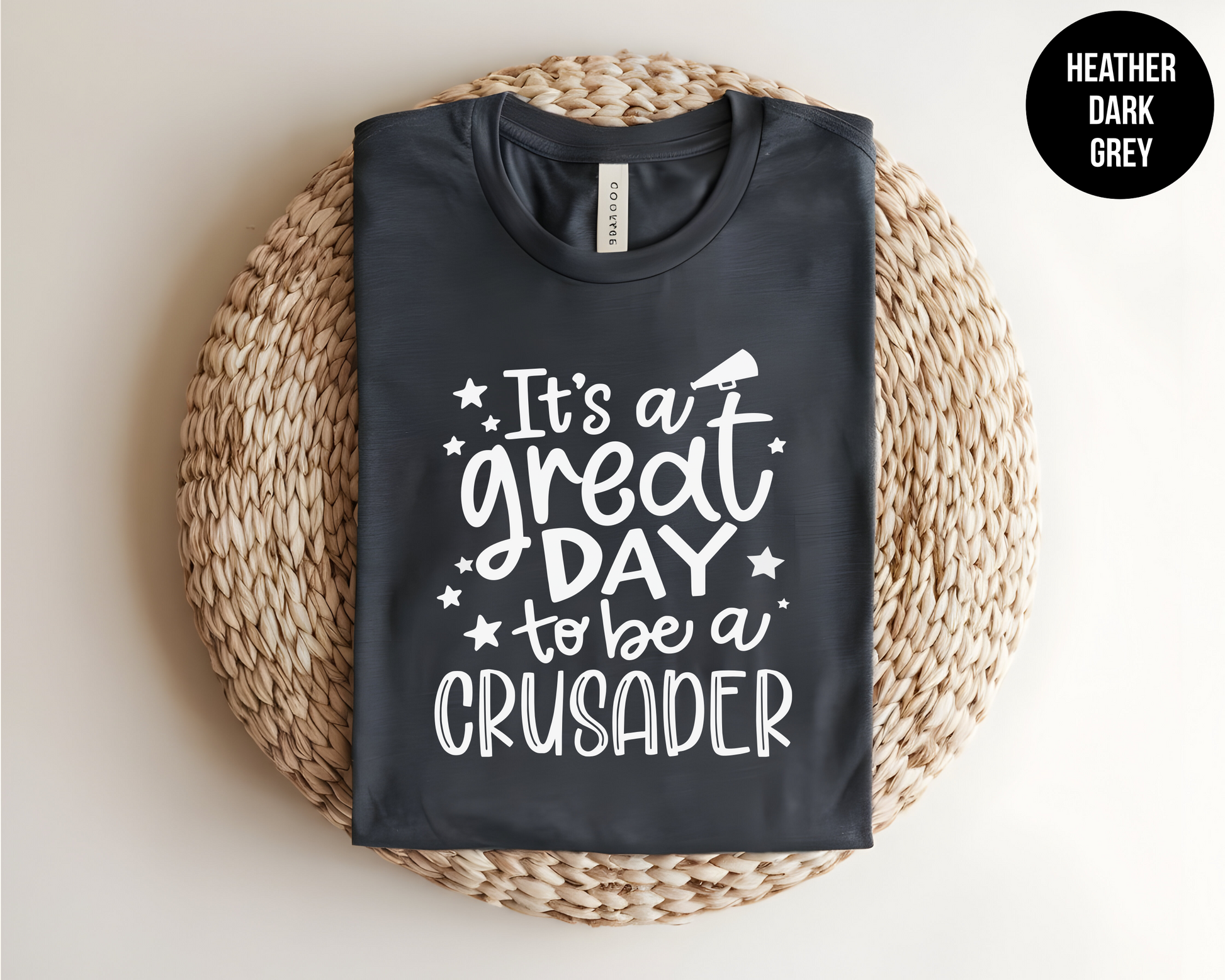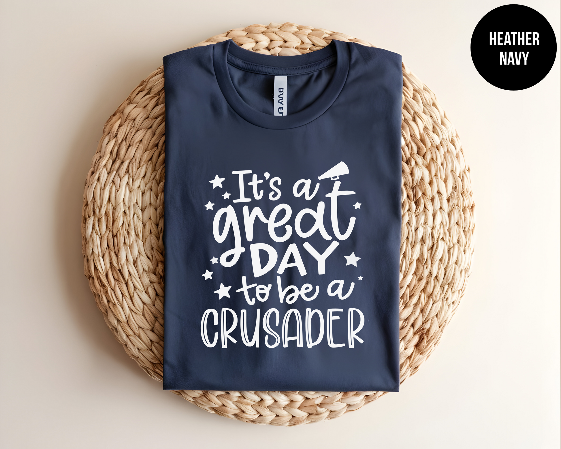 It’s a unisex, all-purpose shirt that works for any grade level — high school, middle school, or college — and any Crusader-loving crew.