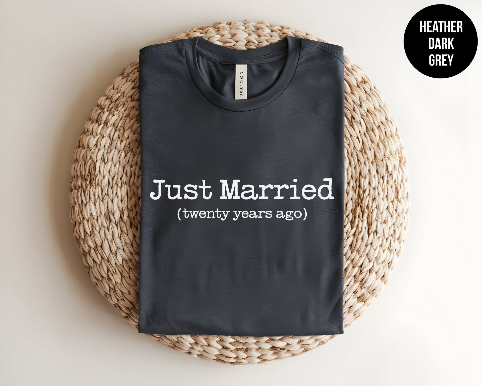 This "Just Married (20 Years Ago)" shirt is a fun and lighthearted way to celebrate two decades of love and commitment! Perfect for anniversaries, vow renewals, or just showing off your lasting relationship with a touch of humor. Whether you're surprising your spouse or wearing it as a matching couple’s set, this design is great for parties, vacations, or everyday wear. A must-have for any couple who knows that love only gets better with time!