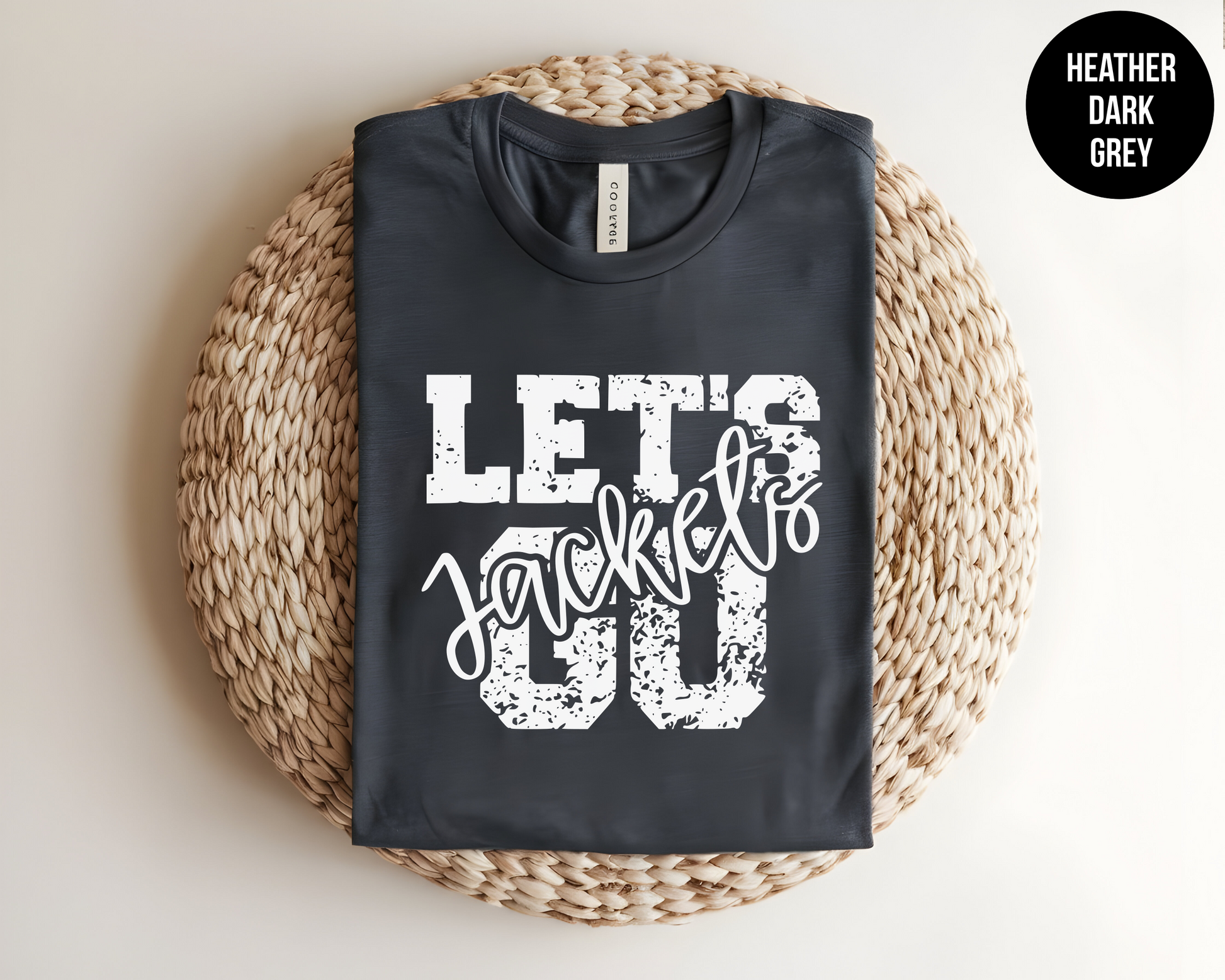Get ready for game day in style with our “Let’s Go Jackets” T-Shirt! Featuring bold distressed varsity lettering with a stylish script “Jackets” overlay, this design delivers the perfect mix of vintage school pride and modern comfort.