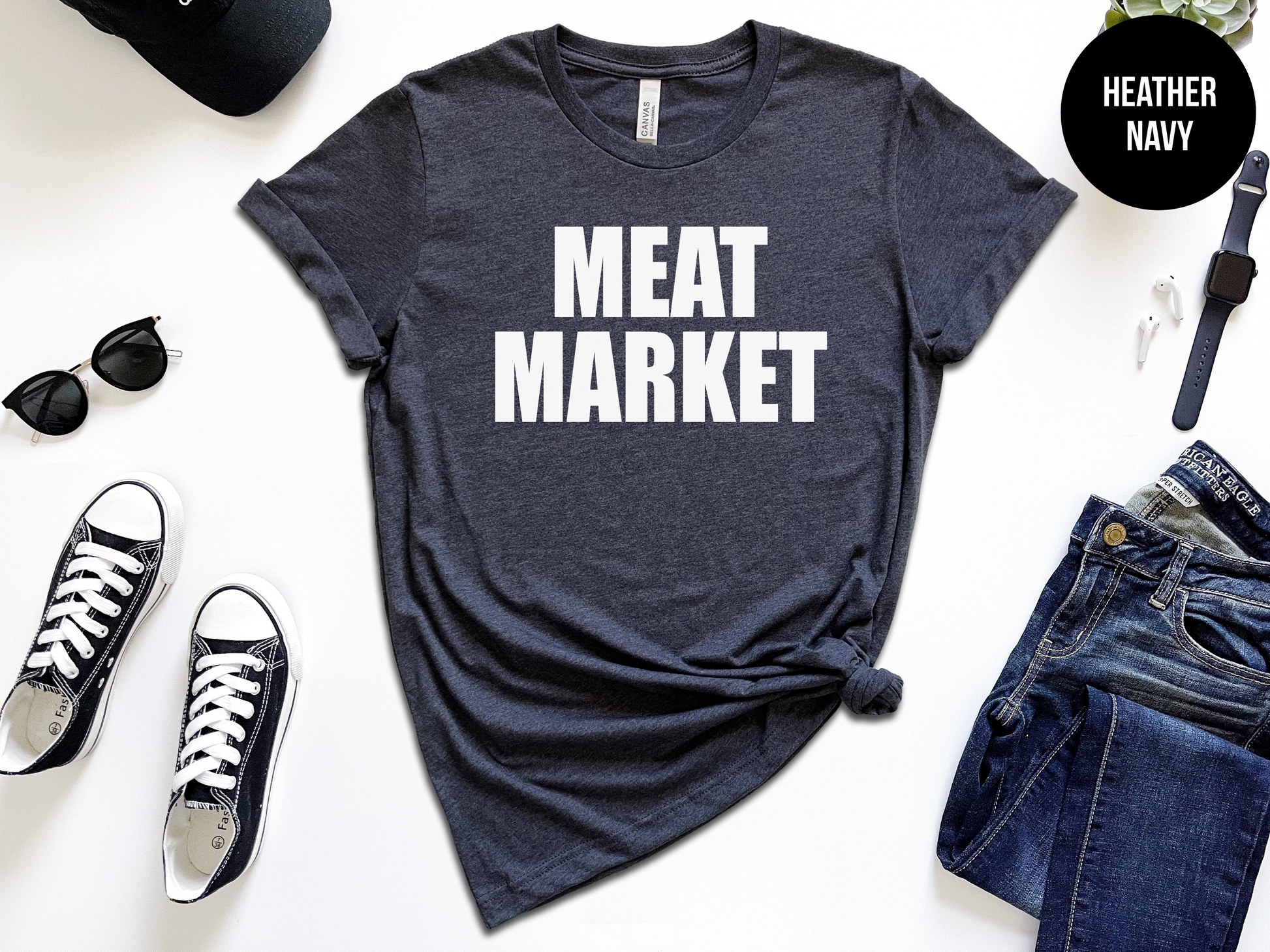 The Meat Market is sizzling! Look stylish and stay cool in this Meat Market shirt for men from the Shirt Republic. Show off your fashion chops and make a statement with this sartorial masterpiece!