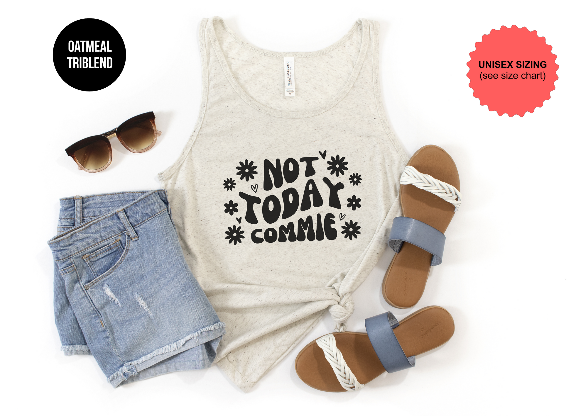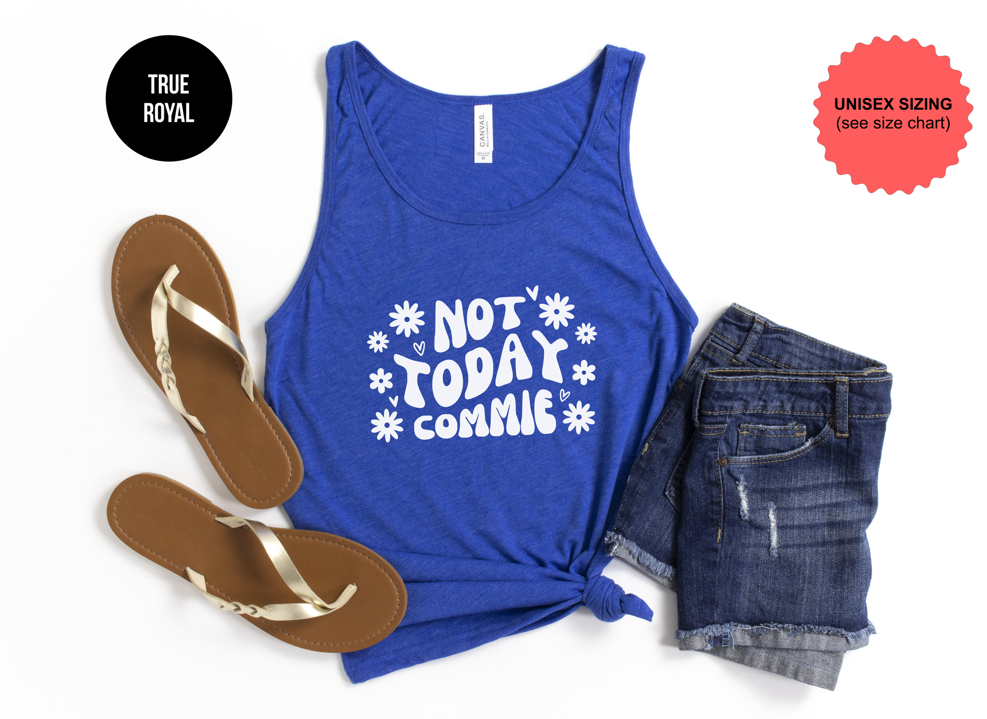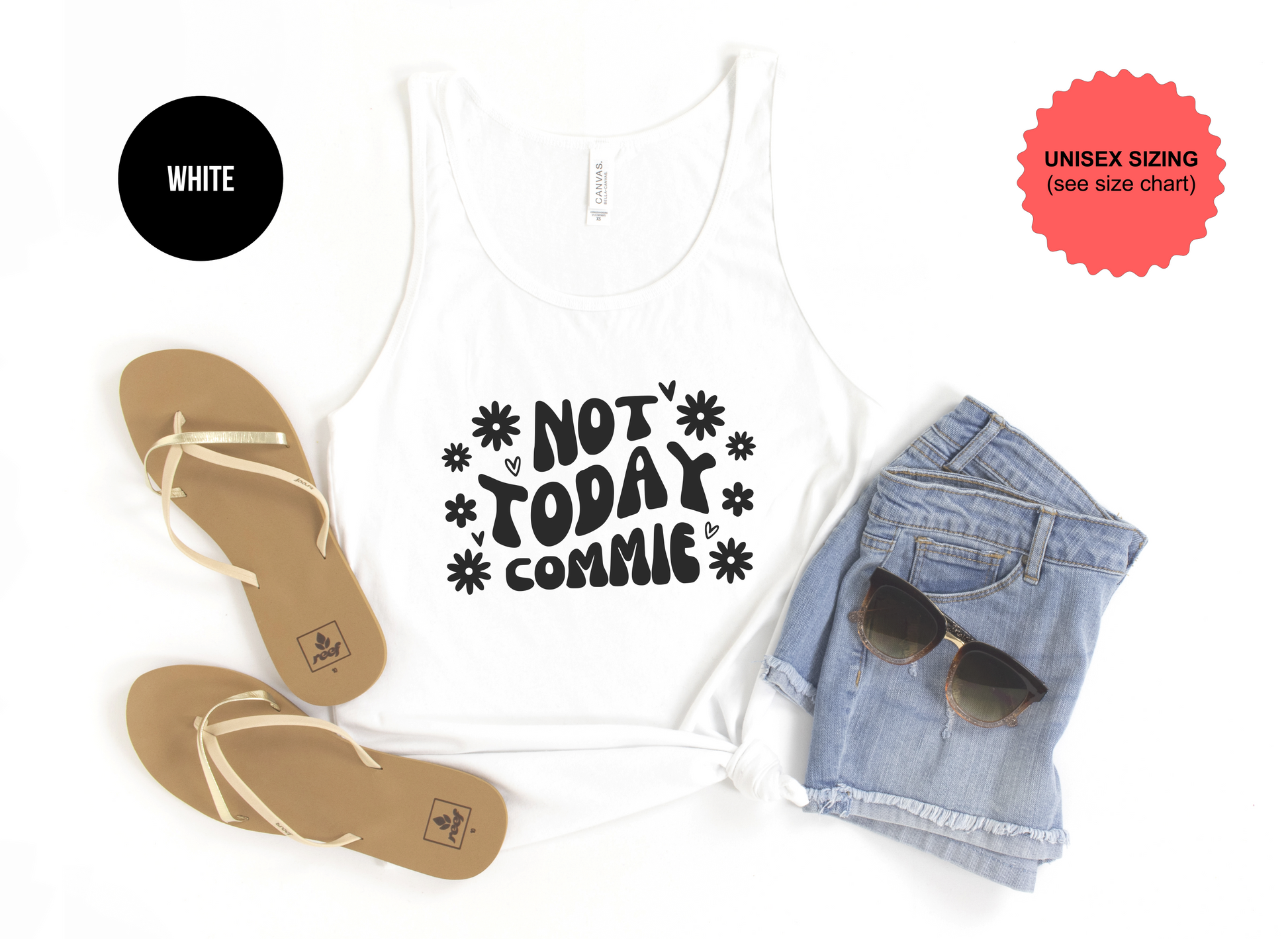 Look sharp with the Not Today Commie Tank Top from The Shirt Republic! Show off the message that everyone needs to hear with a stylish twist. Soft and lightweight, this super cute tank is perfect for everyday wear.