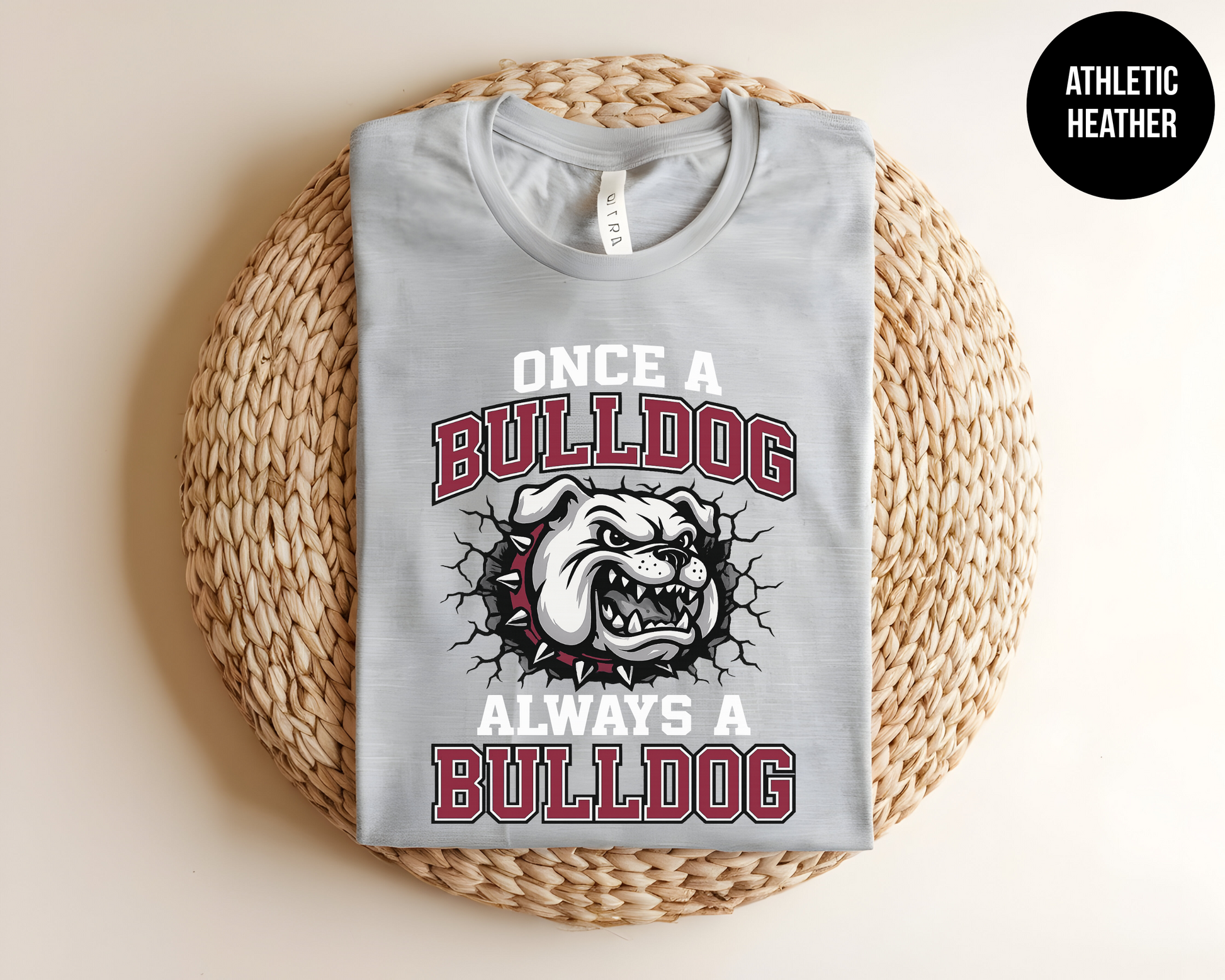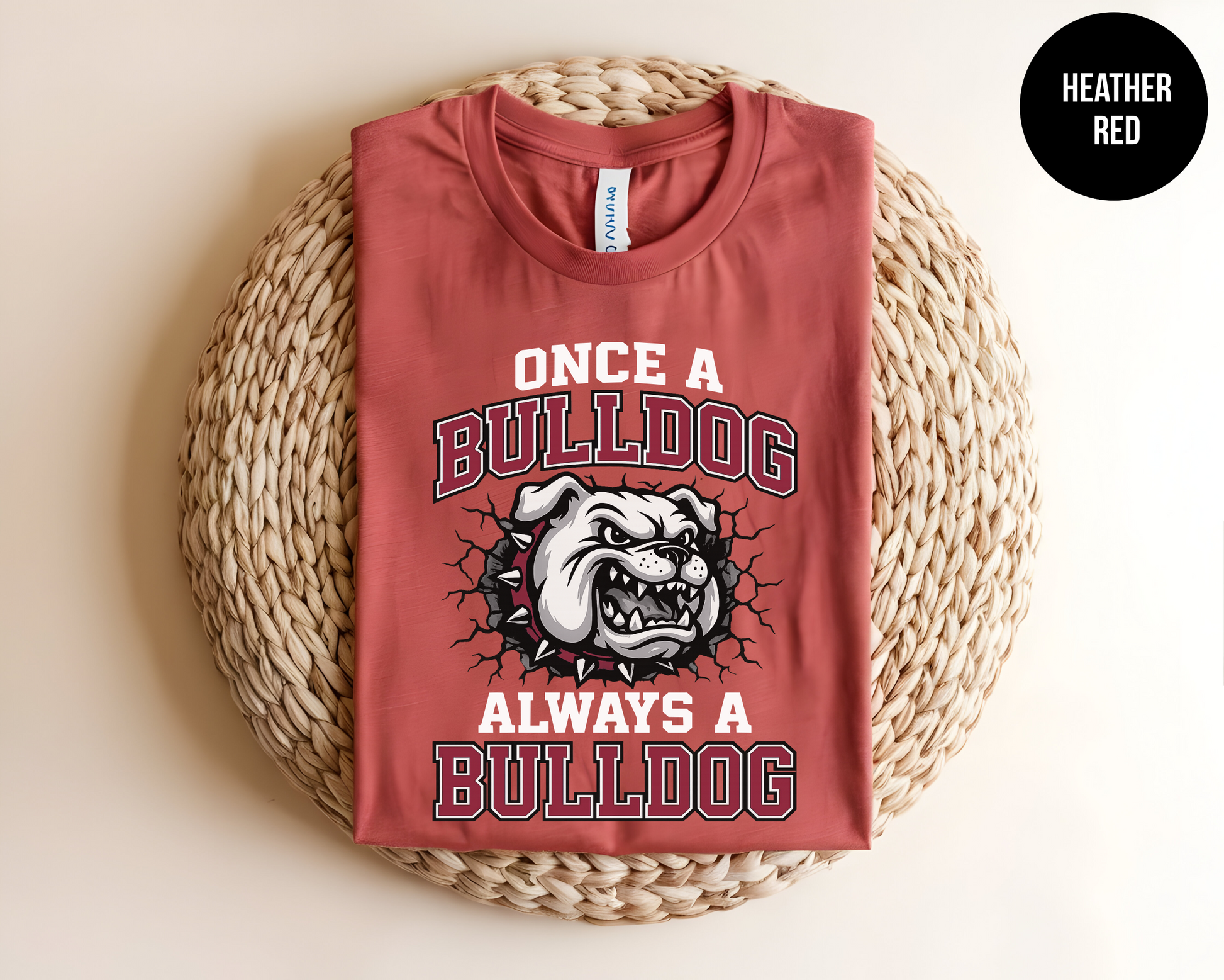 ONCE A BULLDOG, ALWAYS A BULLDOG TEE – HEATHER RED