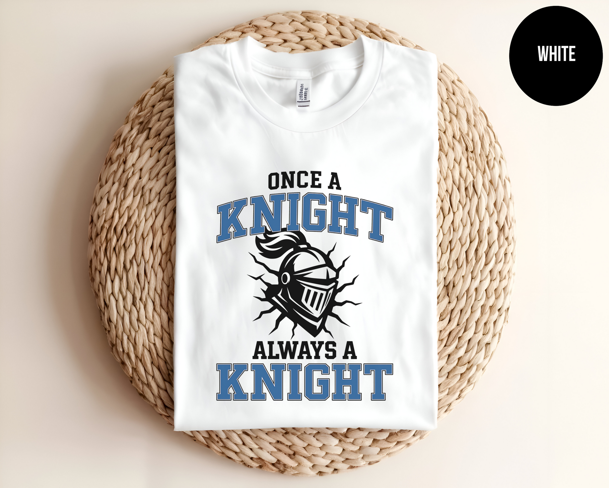 Suit up in pride with this bold knight mascot tee—designed for those who never hung up their armor. Whether you're a proud alumni or a current champion, this shirt brings the valor and legacy of your school days to life in a sharp blue-and-black design.
