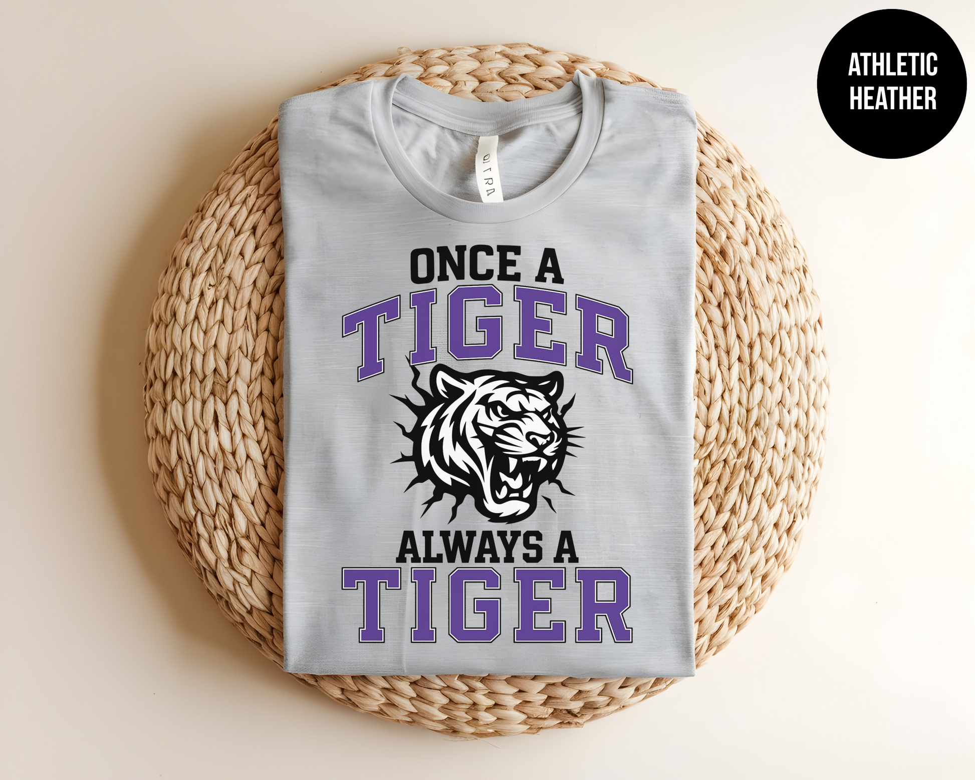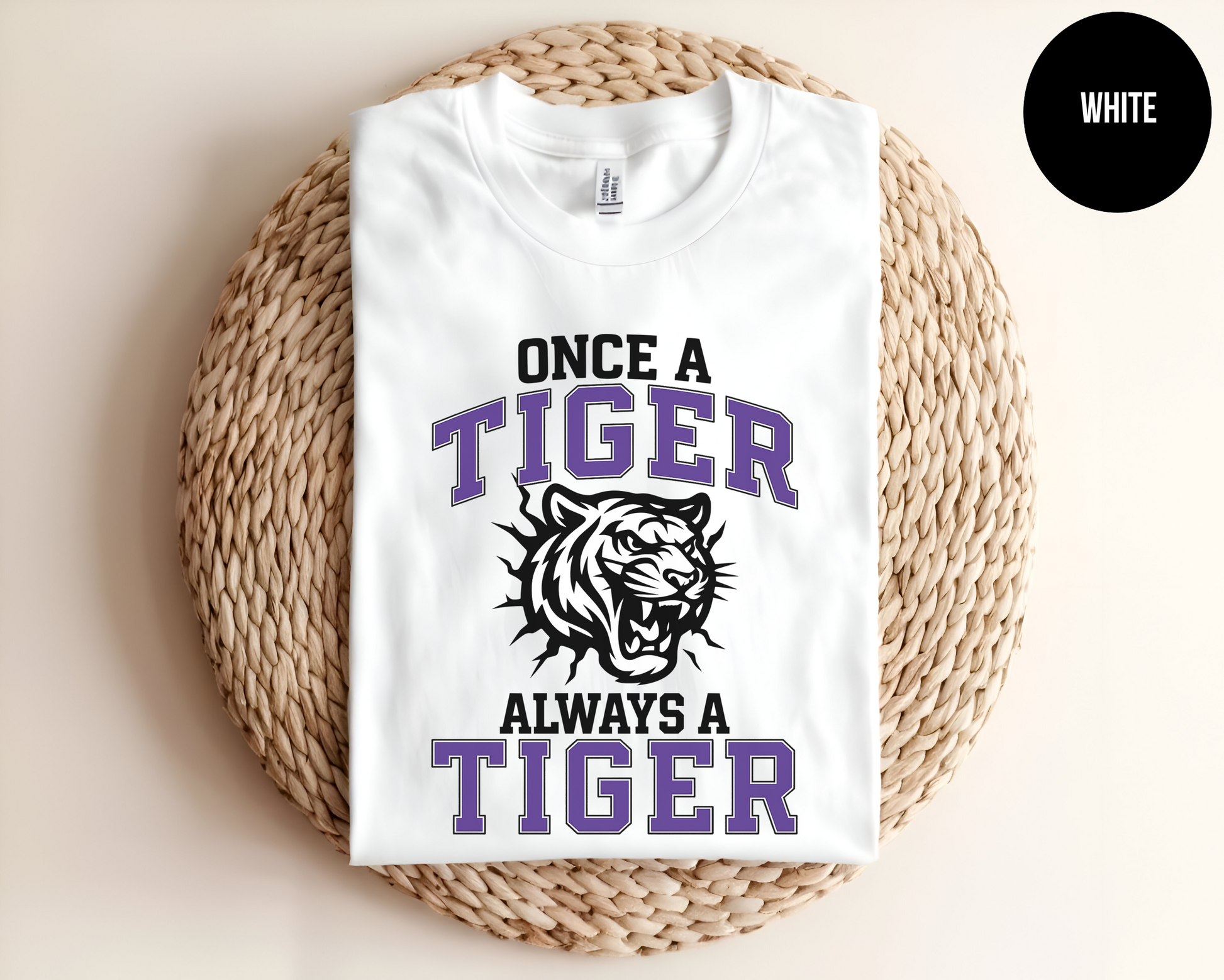 Carry the roar with you wherever you go in this bold Tiger mascot shirt. Featuring a retro-style tiger graphic and strong block lettering in purple and black, it’s the perfect nod to your roots—whether you're cheering in the stands or walking down memory lane.