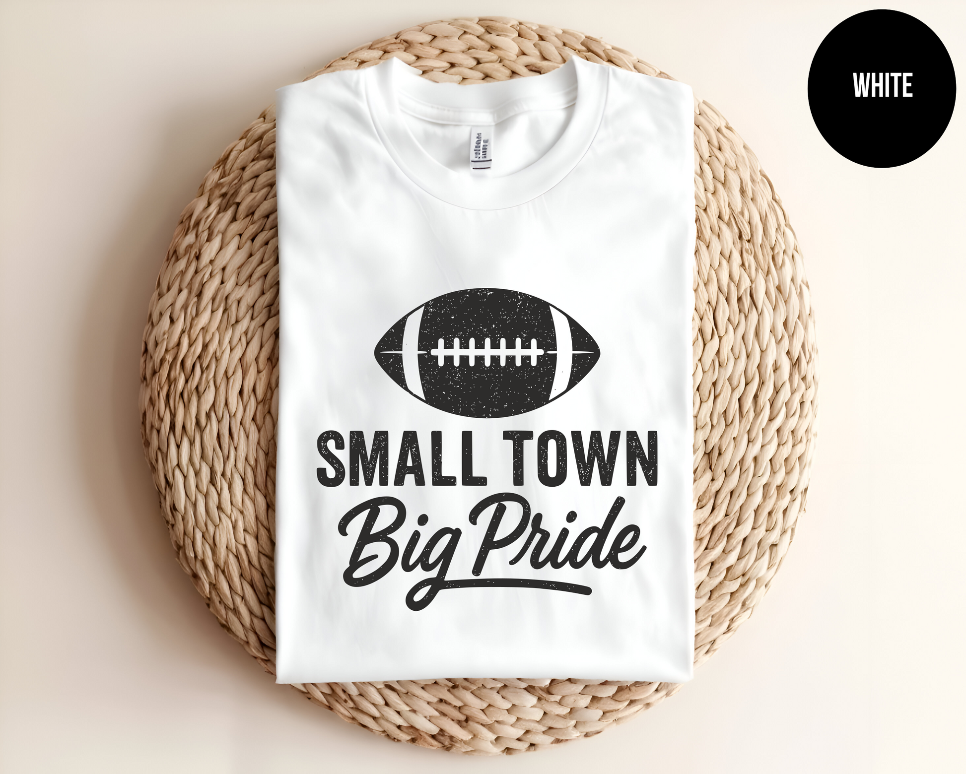 Show your hometown spirit with our Small Town Big Pride t-shirt – perfect for football season, Friday night lights, and repping your team with pride! Featuring a bold football graphic and stylish mix of block and script fonts, this shirt is ideal for parents, players, and fans who bleed small-town pride.