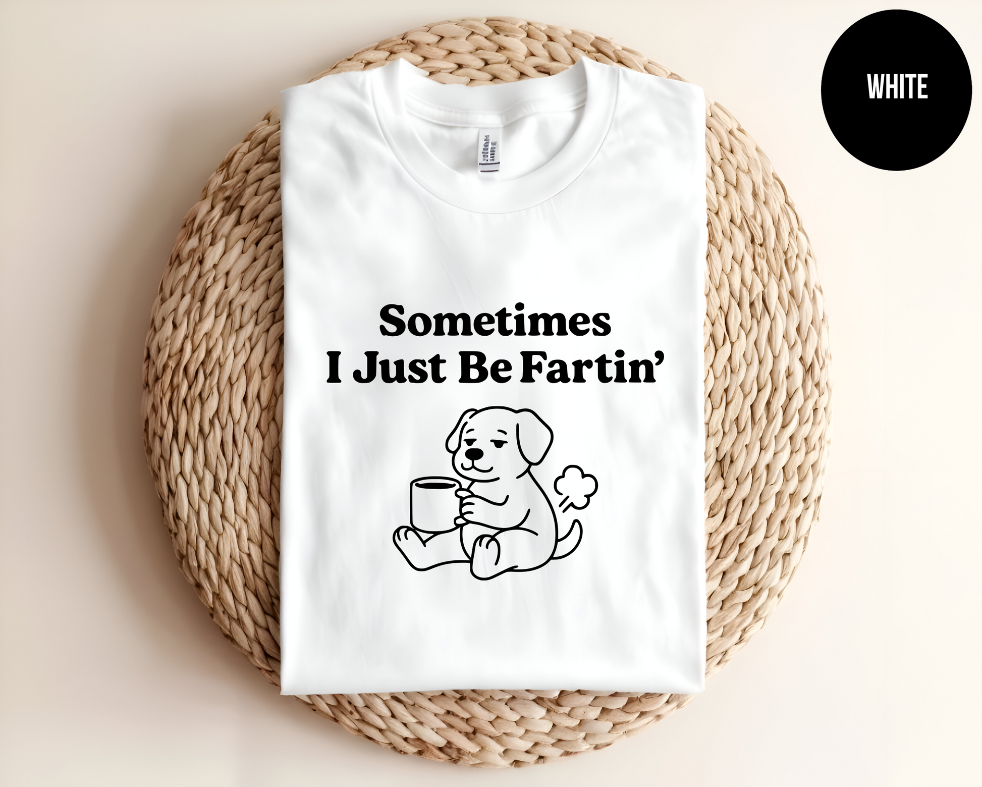 This “Sometimes I Just Be Fartin’” shirt is the perfect mix of cute and crude. Featuring a chill cartoon pup holding a mug and letting it rip with zero shame, this shirt is ideal for coffee lovers, dog people, and anyone who owns their… air rights.