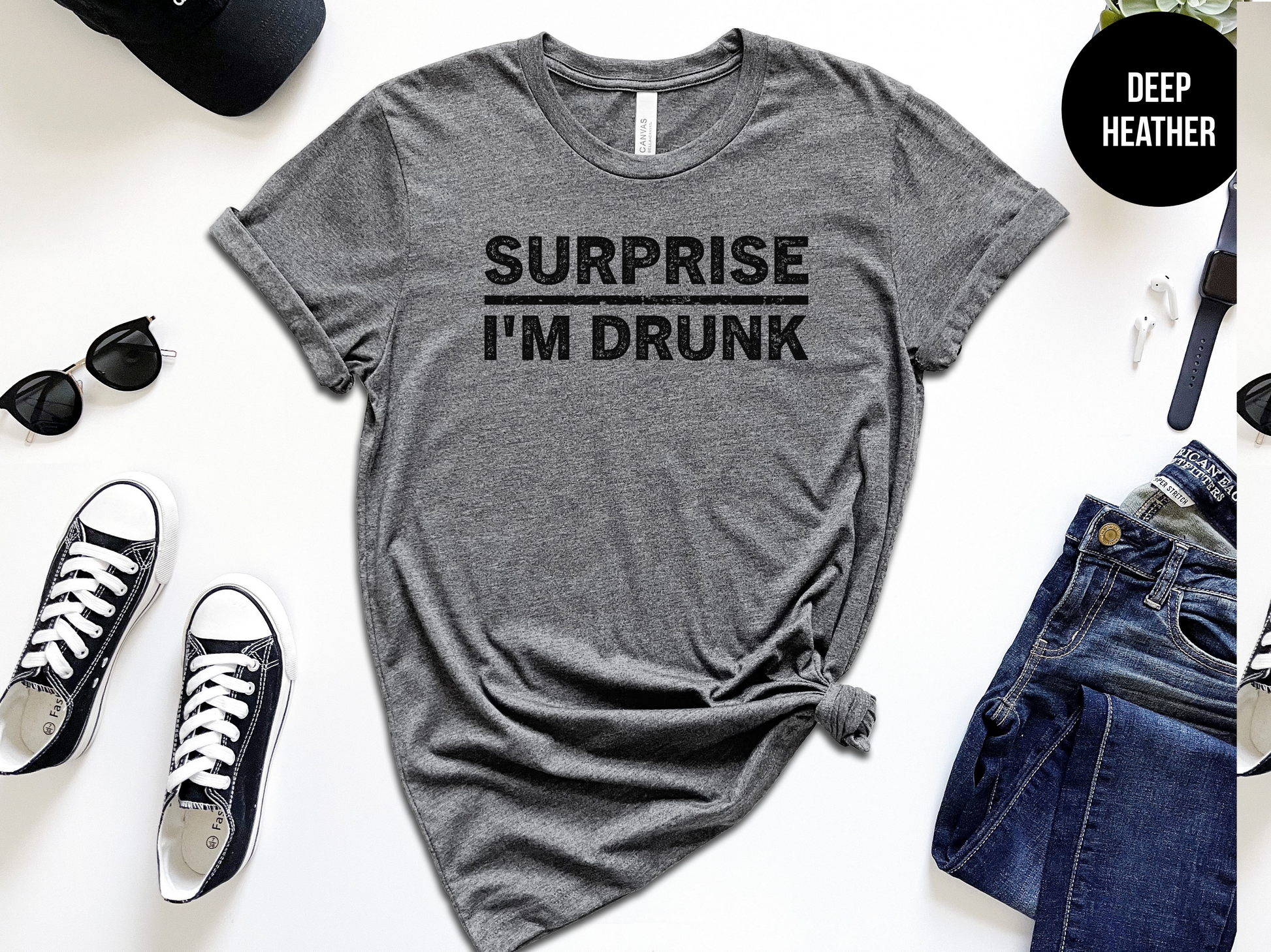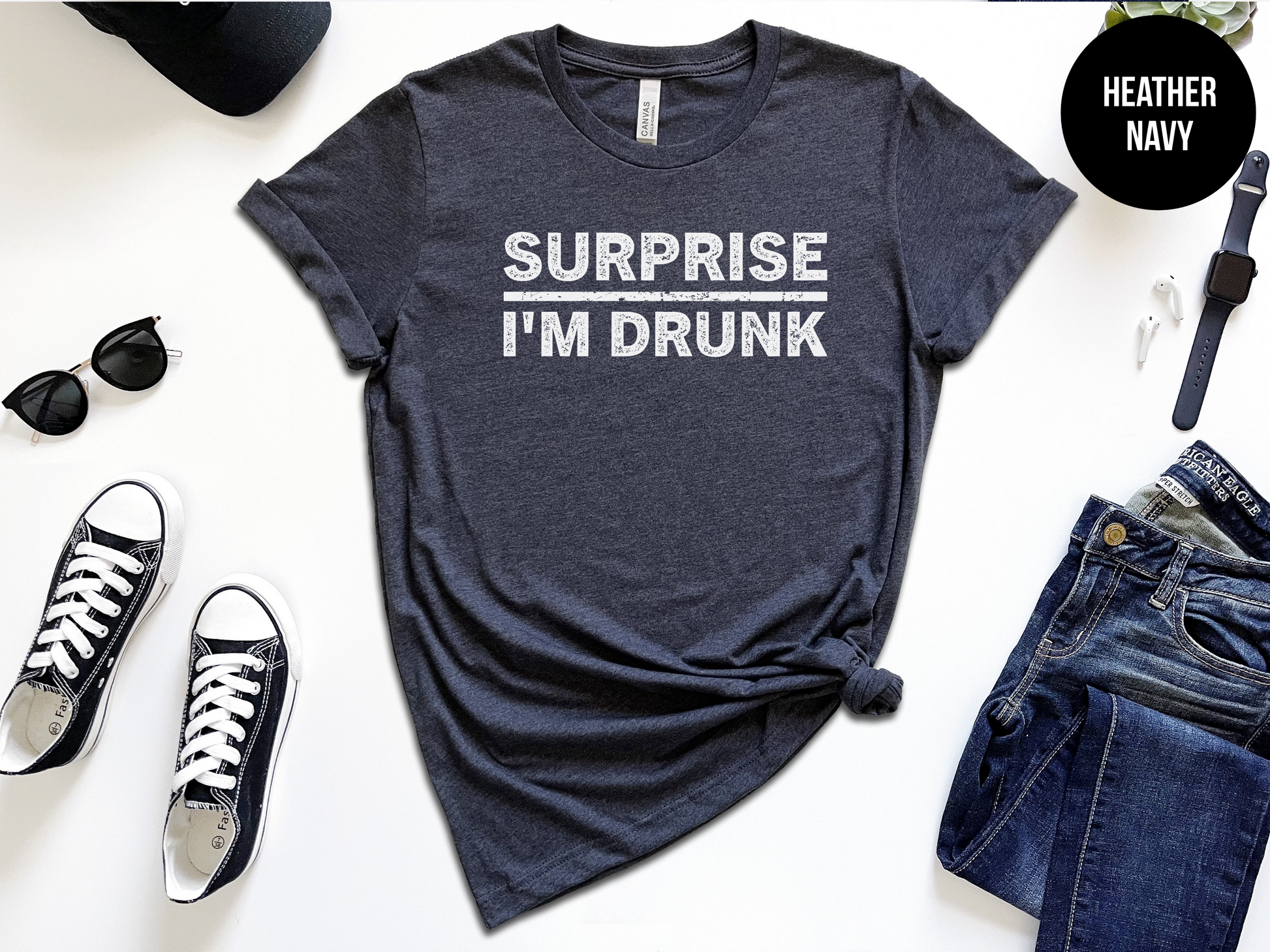 Get ready to surprise everyone at the party with the Surprise I'm Drunk shirt from the Shirt Republic! This quirky shirt will have everyone laughing and wondering what's in your cup. Perfect for those who don't take themselves too seriously. Cheers!