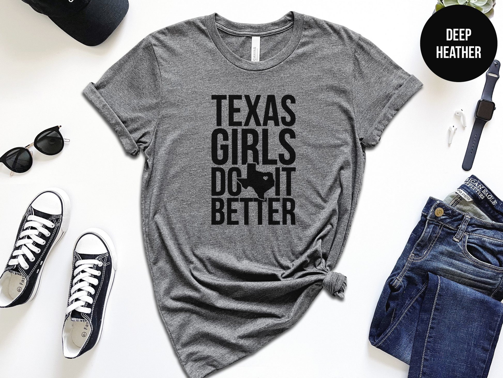 It's time to represent Texas with pride! Show off the state you love with this fun and sassy "Texas Girls Do It Better" shirt from The Shirt Republic. Boast your Lone Star State pride and look stylish at the same time! Yeehaw!