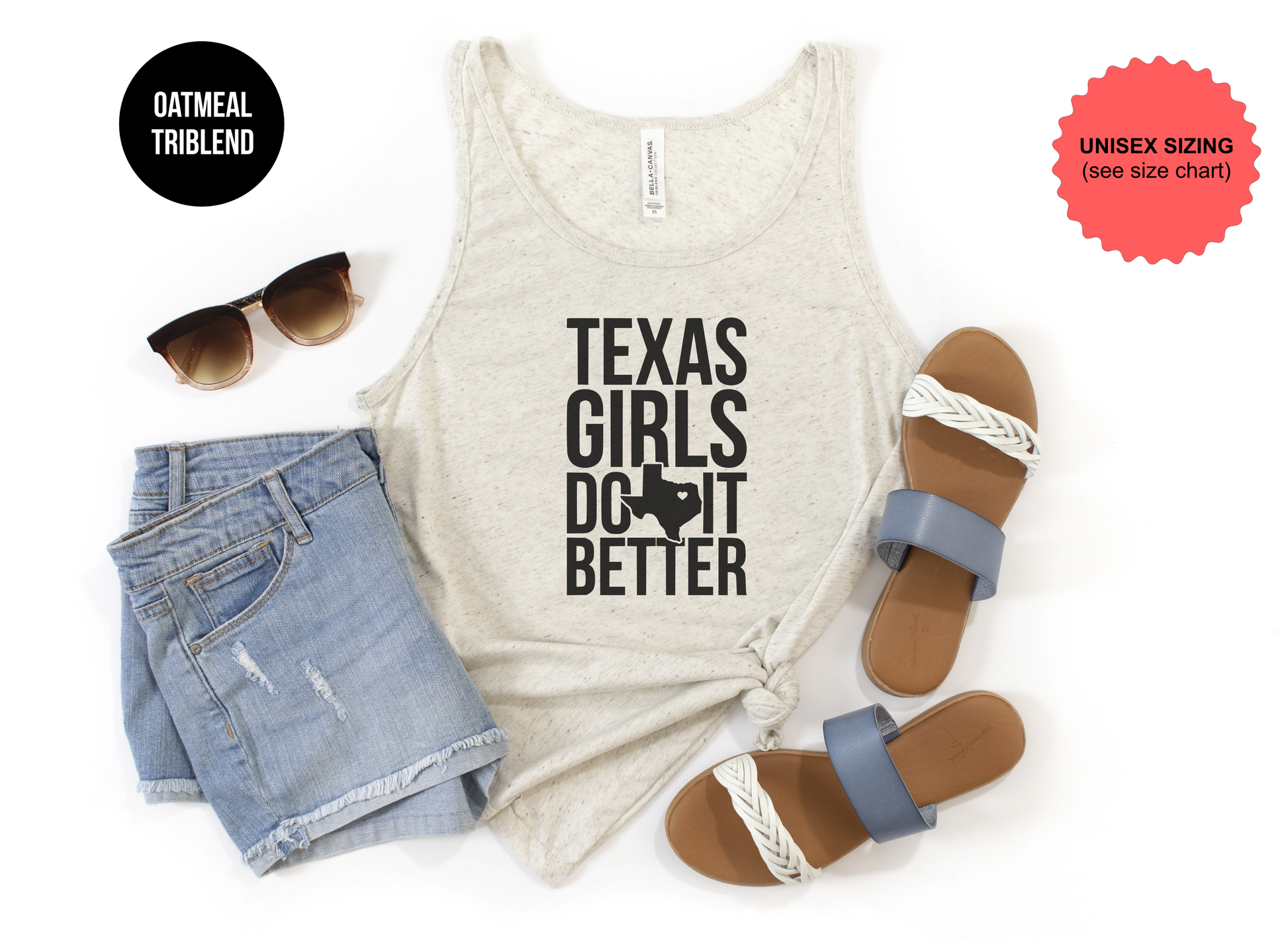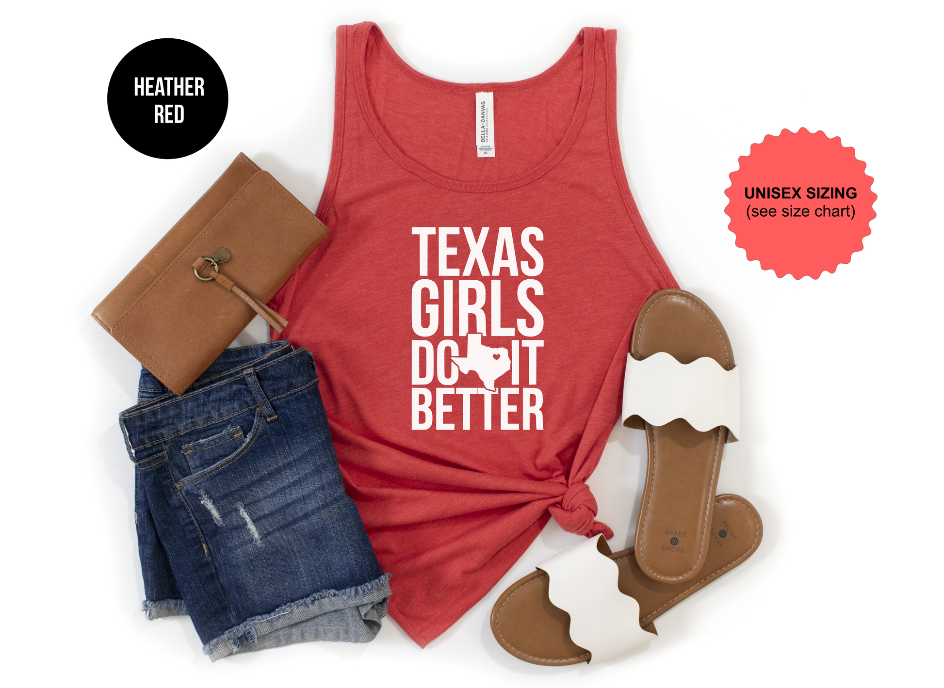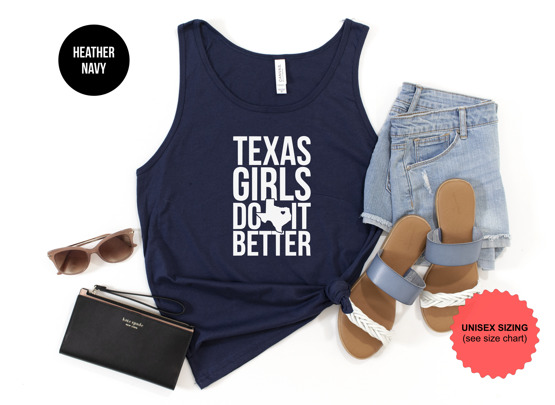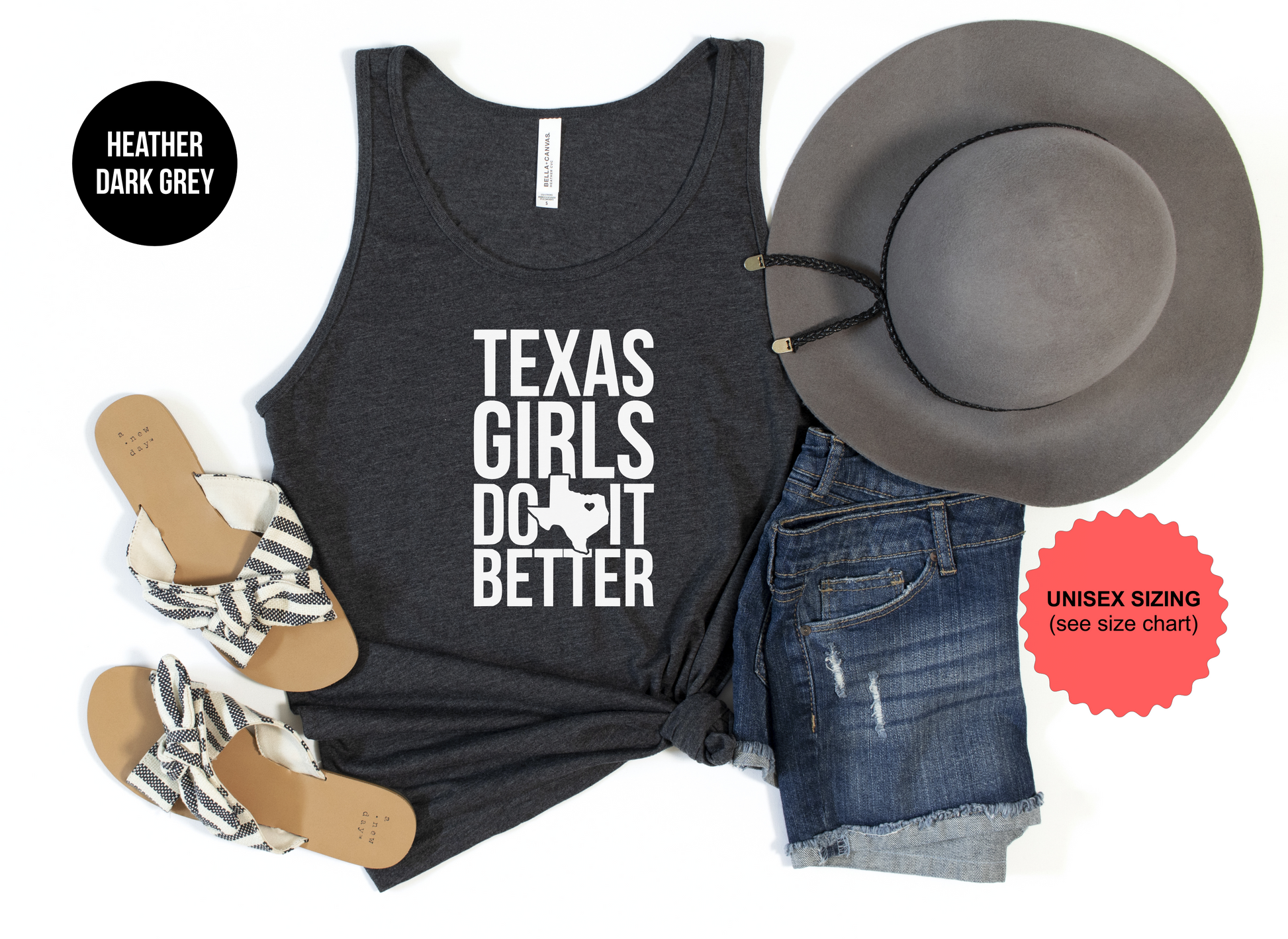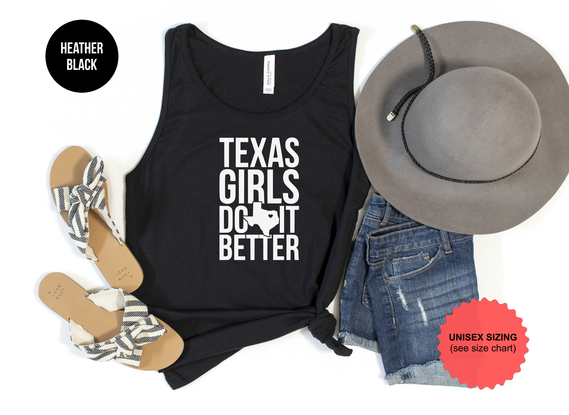 It's time to represent Texas with pride! Show off the state you love with this fun and sassy "Texas Girls Do It Better" tank top from The Shirt Republic. Boast your Lone Star State pride and look stylish at the same time! Yeehaw!