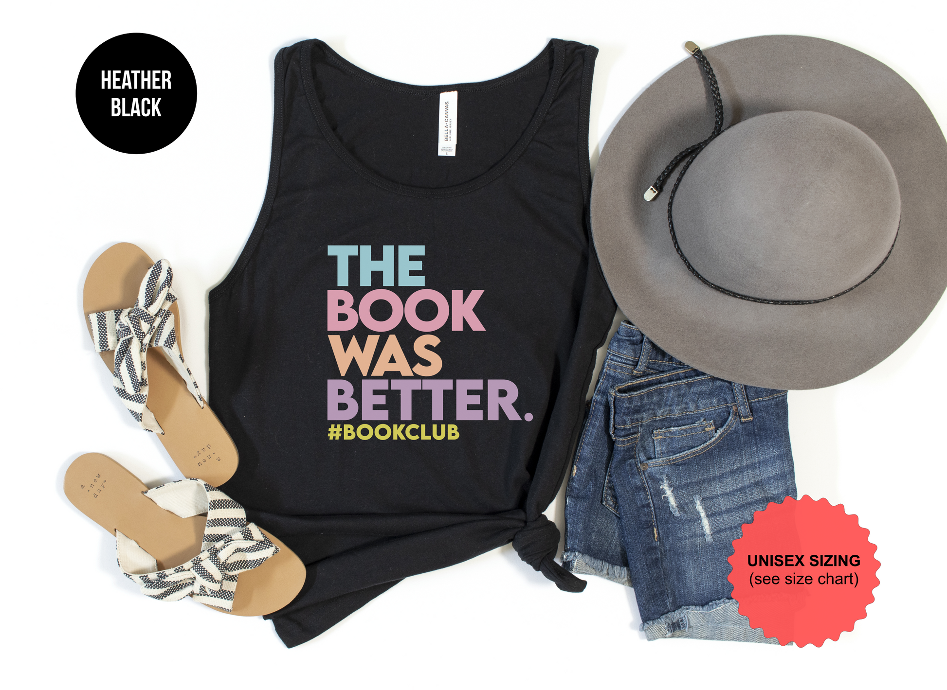 For all the bookworms who know that the book is ALWAYS better than the movie 📚✨, this "The Book Was Better #bookclub" tank top is made for you! Whether you're at your next book club meeting, curled up with a good read, or just out and about sharing your love for literature, this tank will have all the fellow book lovers nodding in agreement.