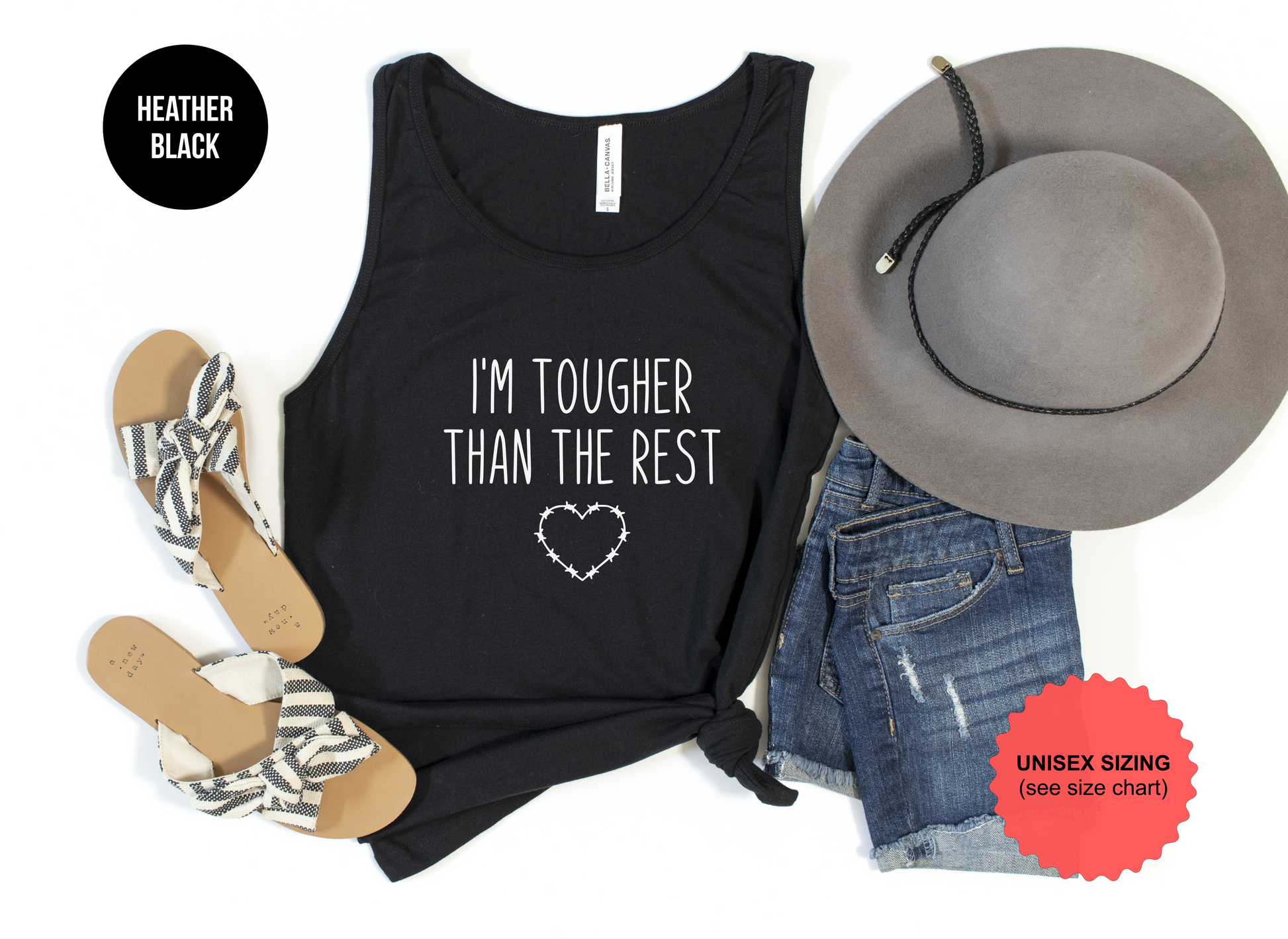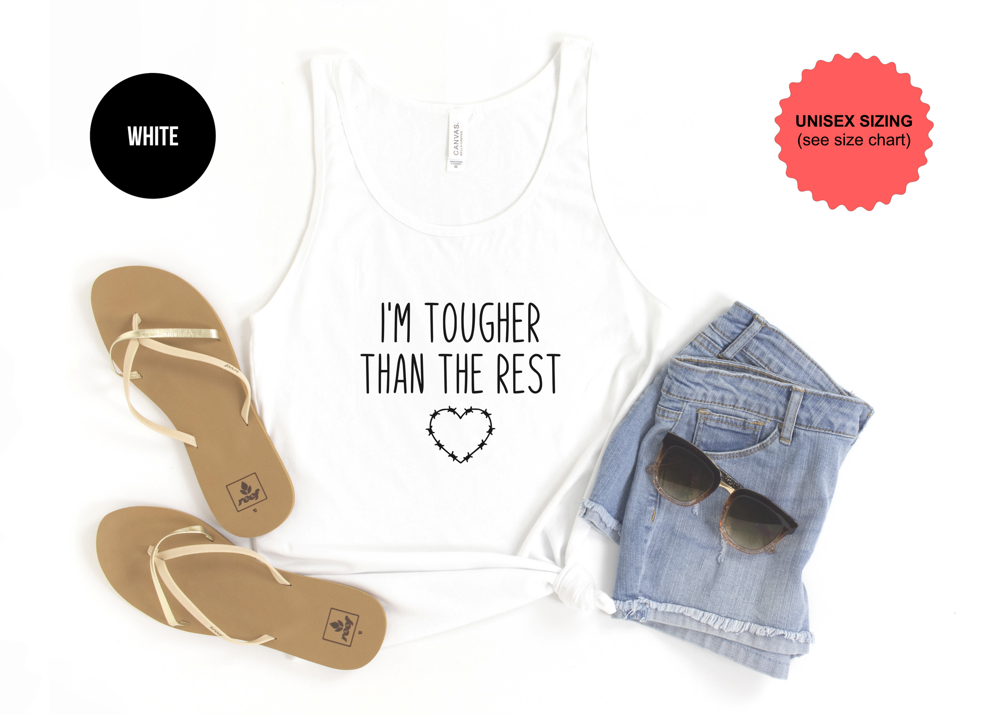 Introducing the ultimate tank top for when life gets rough: "Tougher Than The Rest"! Crafted from the toughest materials, it'll keep you looking good and feeling great no matter what comes your way. Go ahead and test its limits, 'cause this bad boy is anything but flimsy! Only at The Shirt Republic!