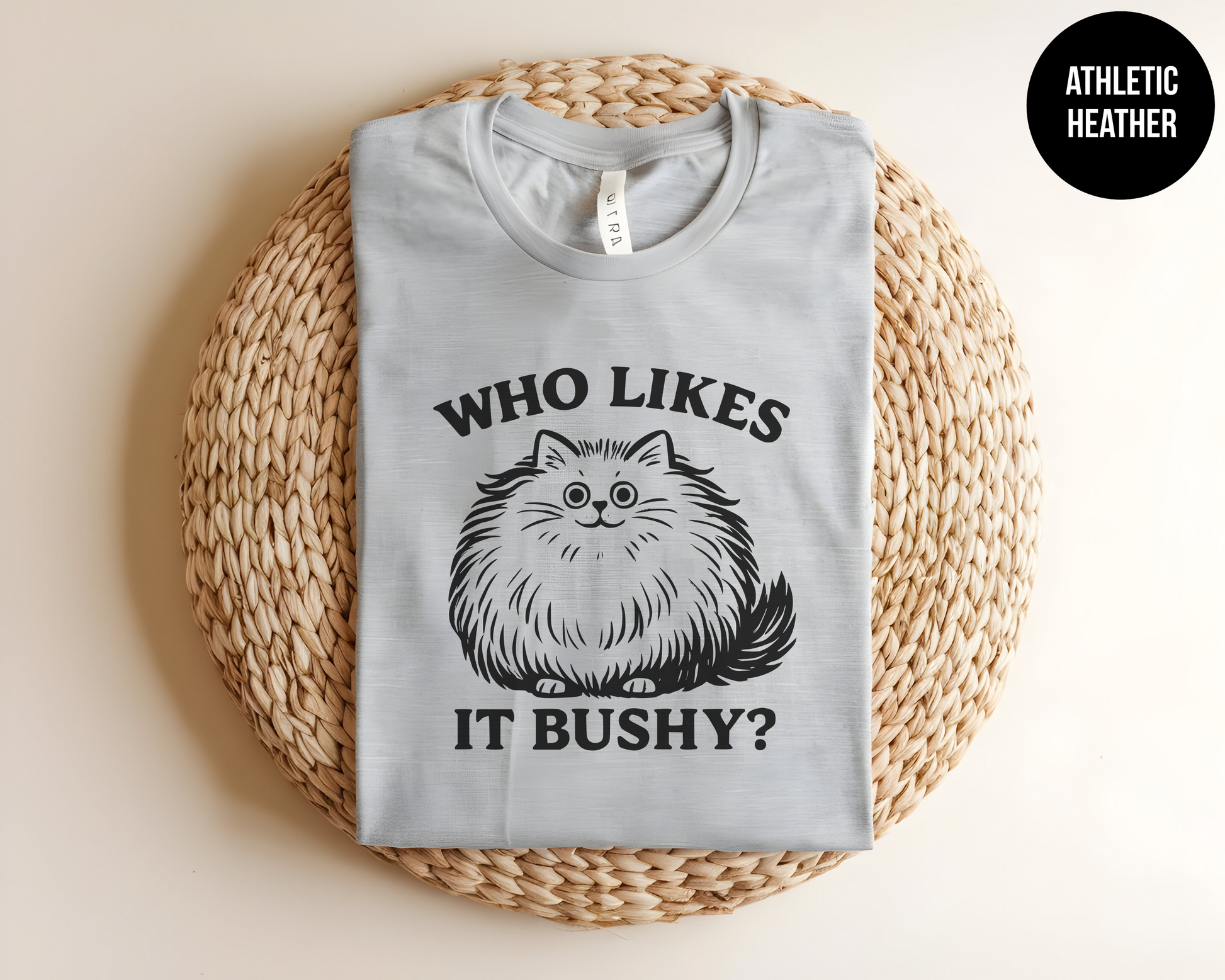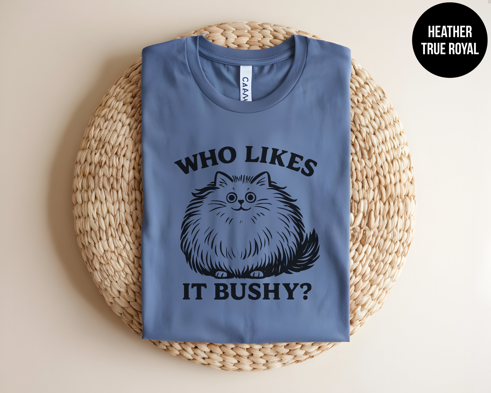 Fluffy, fabulous, and full of sass—this “Who Likes It Bushy?” tee is purr-fection for cat lovers with a sense of humor. Featuring an adorably floofy feline and a not-so-subtle innuendo, this shirt brings just the right amount of mischief to your wardrobe.