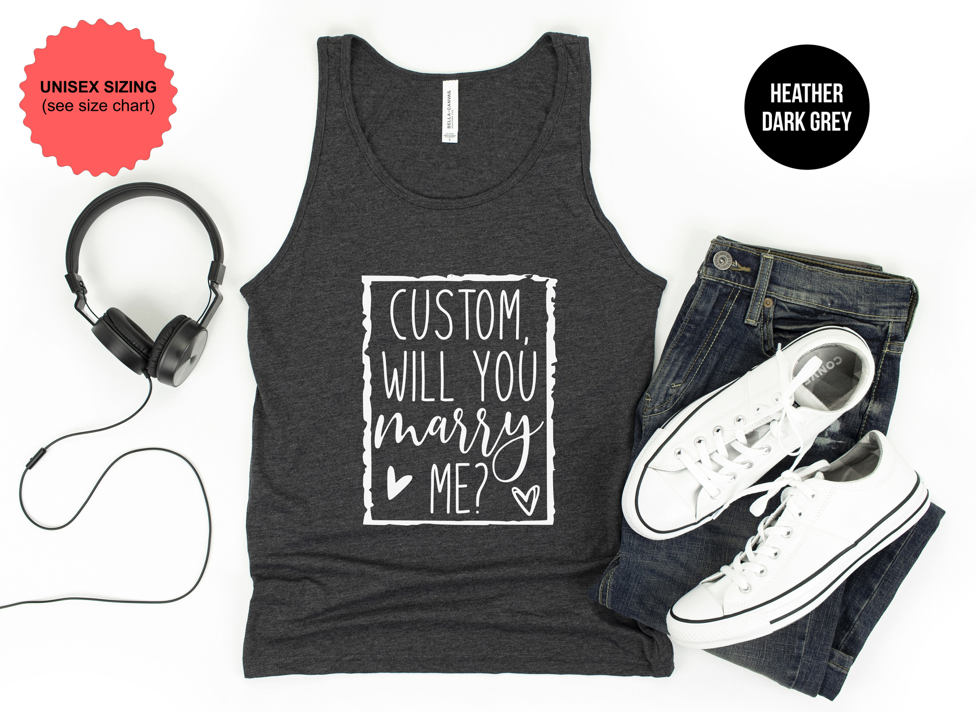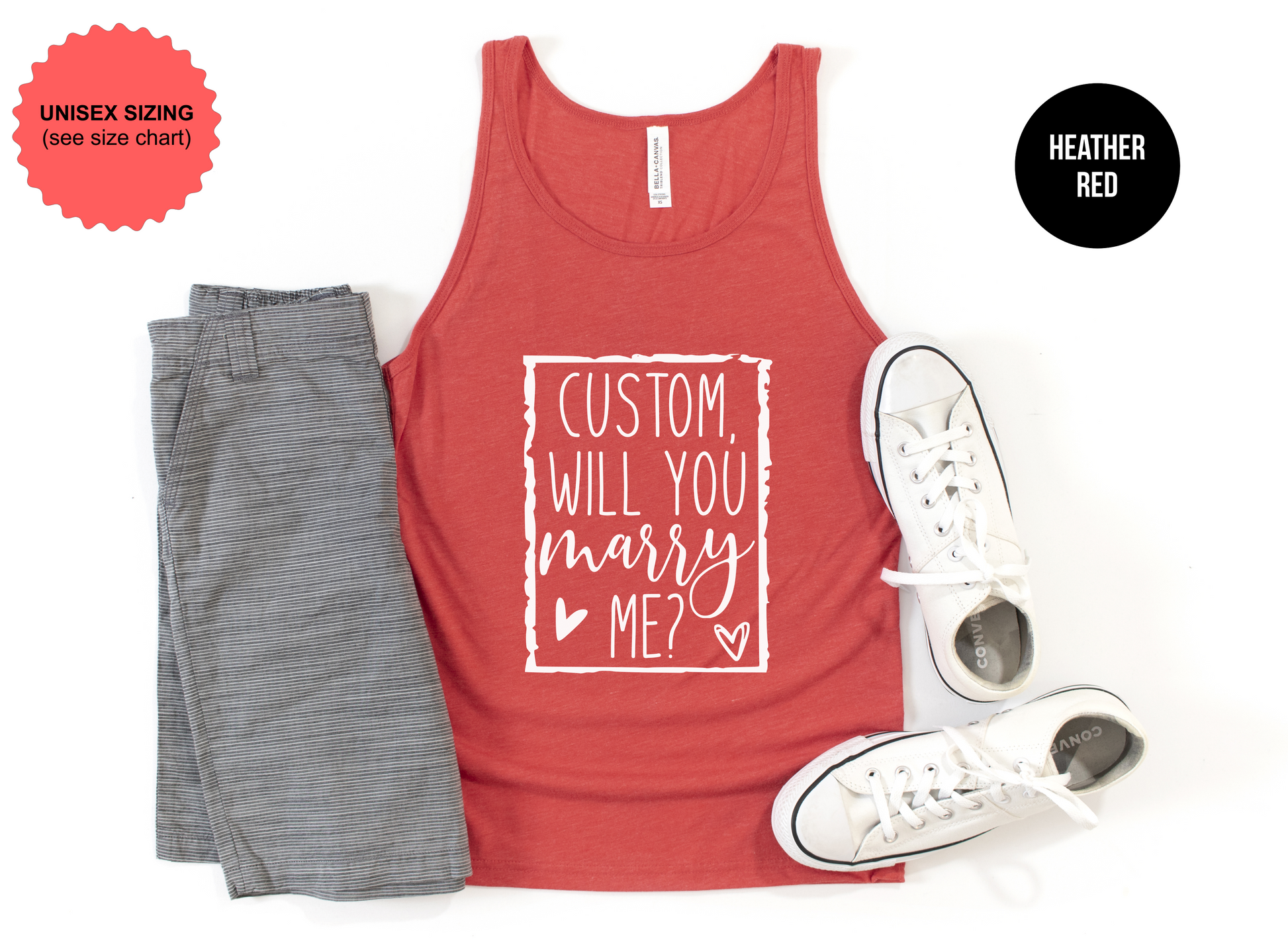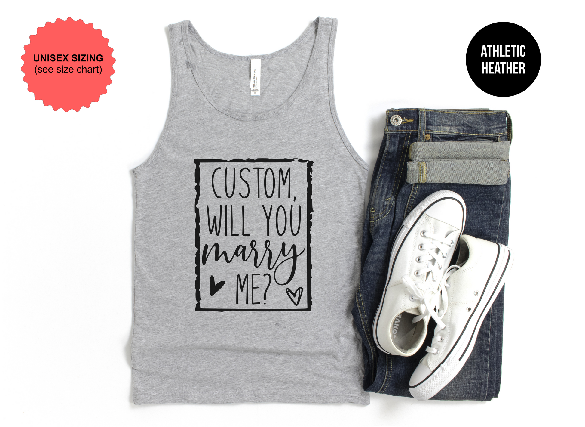This Will You Marry Me Tank Top has all the right ingredients for a successful marriage proposal. Pop the question in style with this custom engagement tee from the Shirt Republic! It's the perfect way to say "yes" to a lifetime of love and laughter! 💓