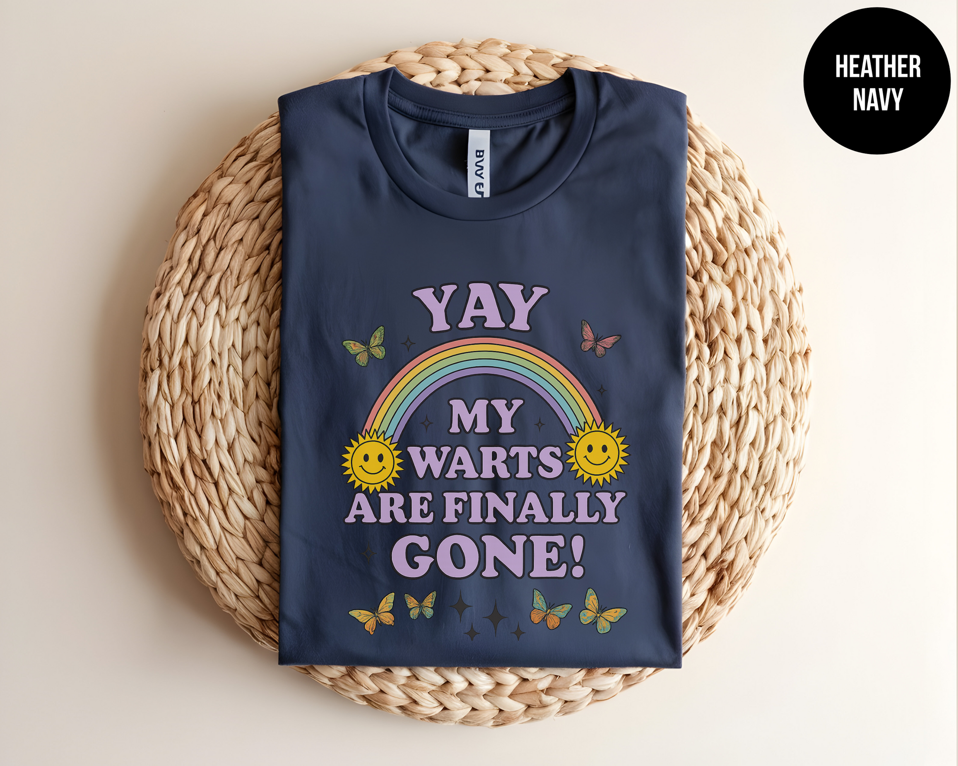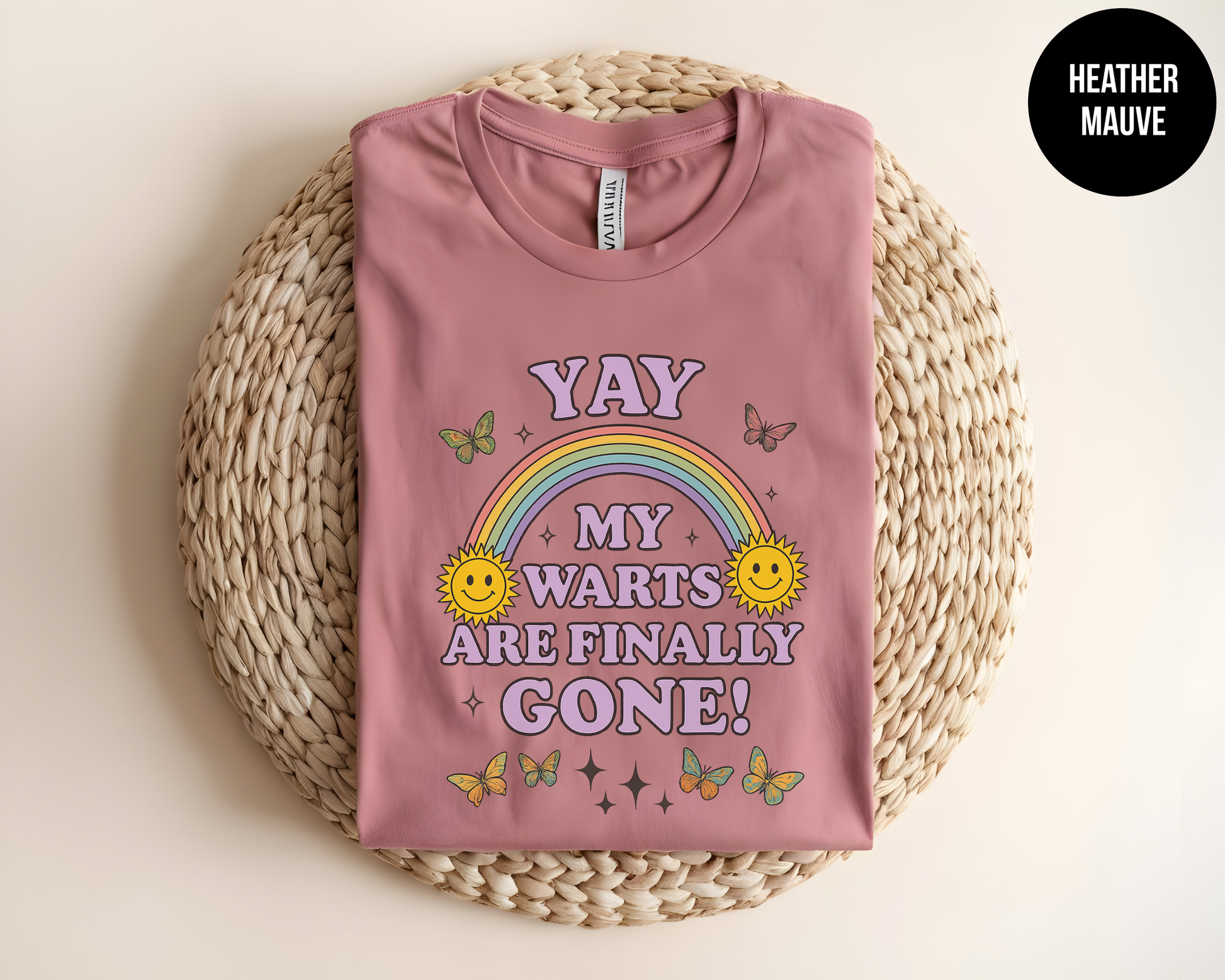 Celebrate your victory over pesky skin annoyances in style with our “YAY! My Warts Are Finally Gone!” tee. This soft, ring-spun cotton shirt features a vibrant rainbow, smiling suns, fluttering butterflies, and bold retro lettering—perfect for anyone who’s waved goodbye to warts and hello to clear skin. Whether you’re a dermatologist, skincare enthusiast, or simply love quirky, feel-good fashion, this graphic tee will turn heads and spark laughs.